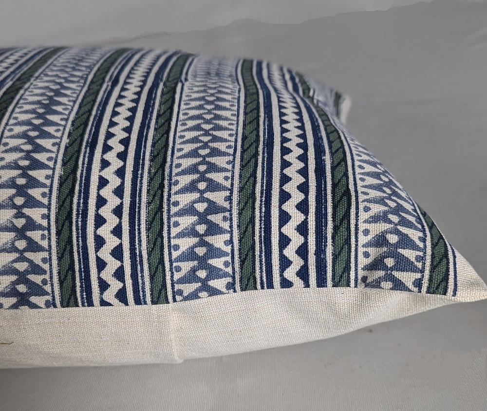 Give your home a stylish and handcrafted touch with this beautiful handblock printed cushion cover featuring bold geometric and tribal patterns. Made from 100% pure cotton, the fabric is soft, breathable, and durable-perfect for everyday comfort and long-lasting use, Soft white, and earthy green tones brings a modern yet ethnic charm to your living space. Handcrafted by skilled Indian artisans using eco-friendly dyes and traditional block printing techniques, this cushion cover is not only a statement piece but also a celebration of sustainable craftsmanship. Whether placed on a sofa, bed, or lounge chair, it adds an authentic handmade feel to your decor. The finished look and easy handling.