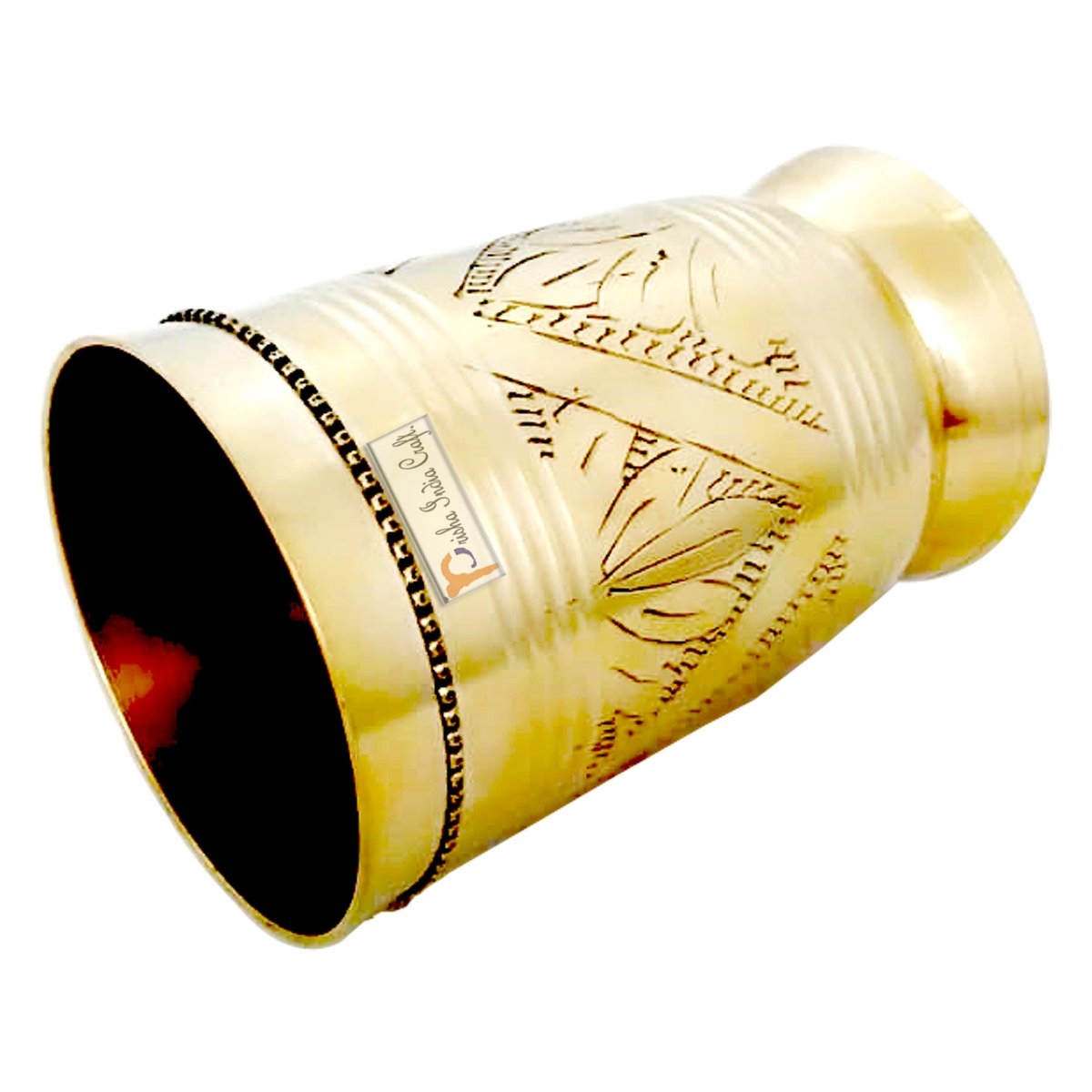 - FEATURES Pure Brass Tumbler: Mughlai Style Embossed Design Glass, Color: Gold, Material: Brass, Weight: Aprox 384 Gram, Height: 4.50" INCH, Width/Diameter: 3.00" INCH, Length: 3.00 INCH, Capacity: 250 ML |