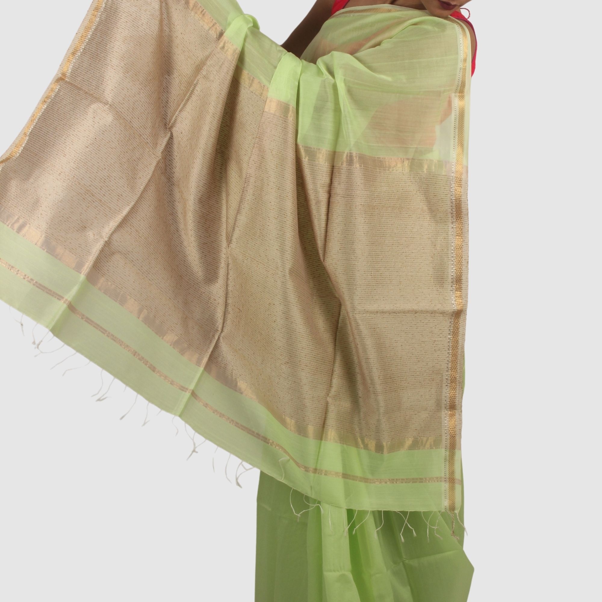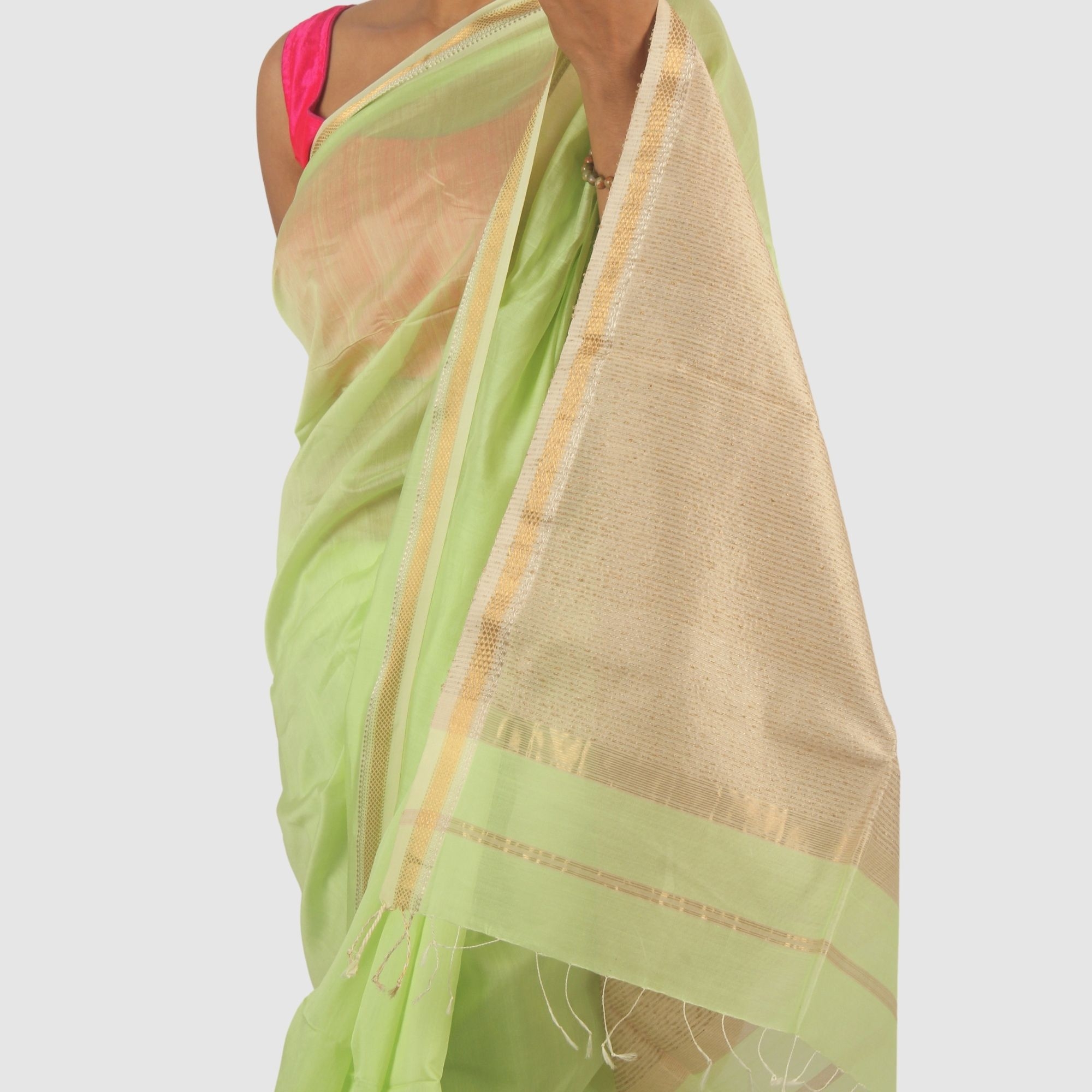 Pastel Green Maheshwari Silk Cotton Handloom Saree with Elegant Gold Zari Pallu