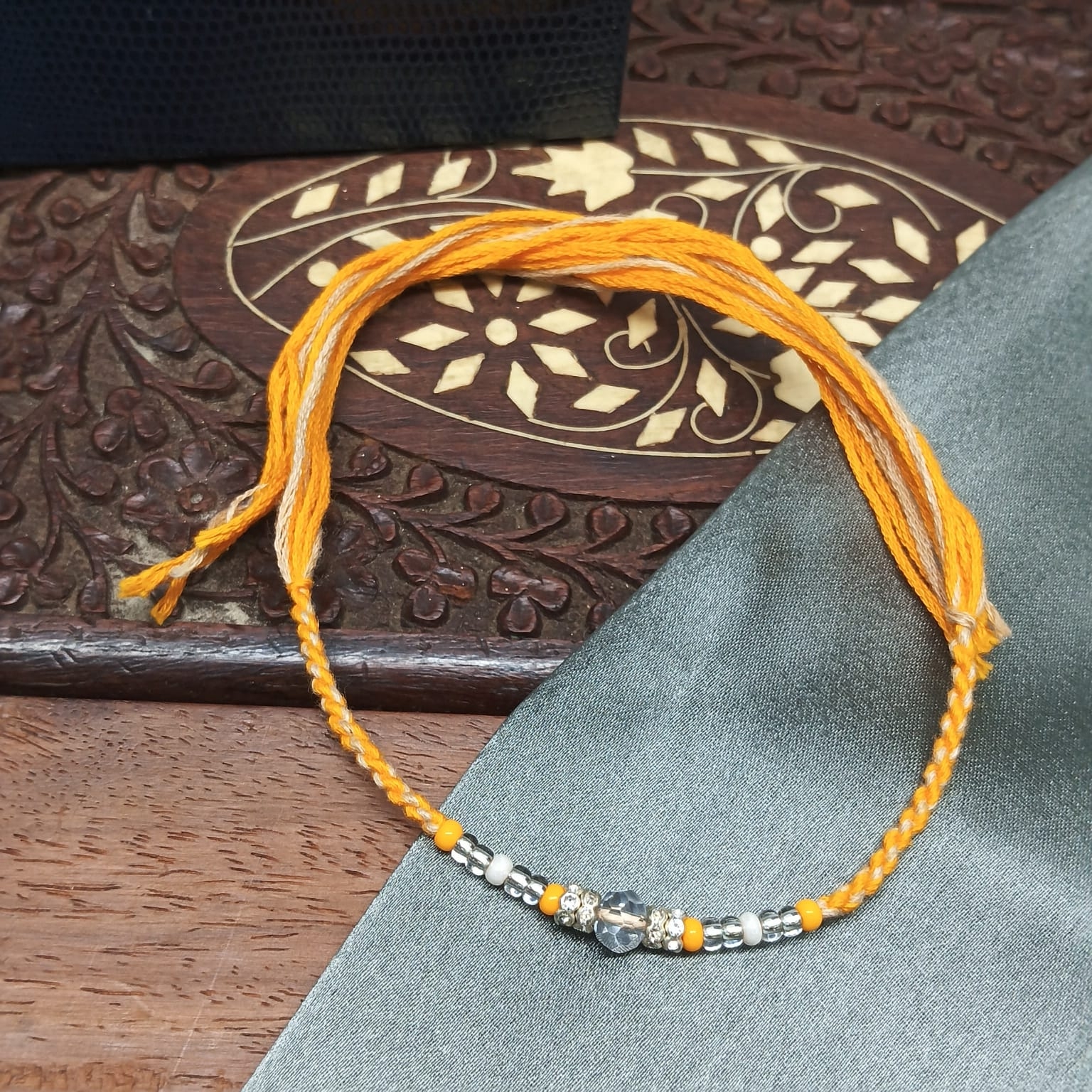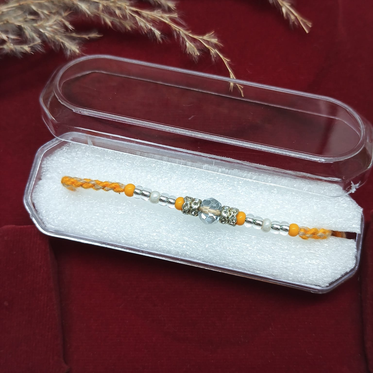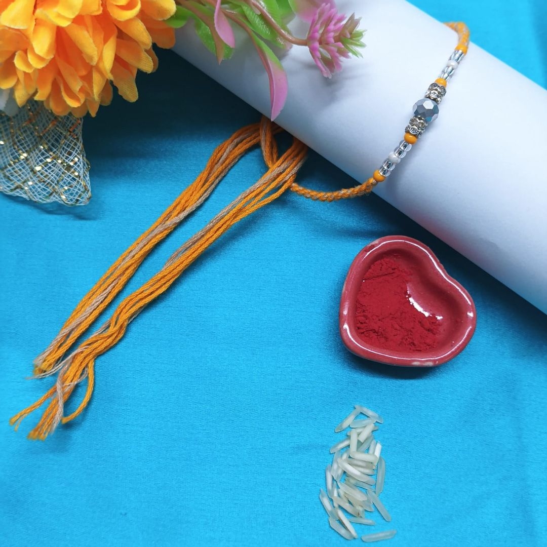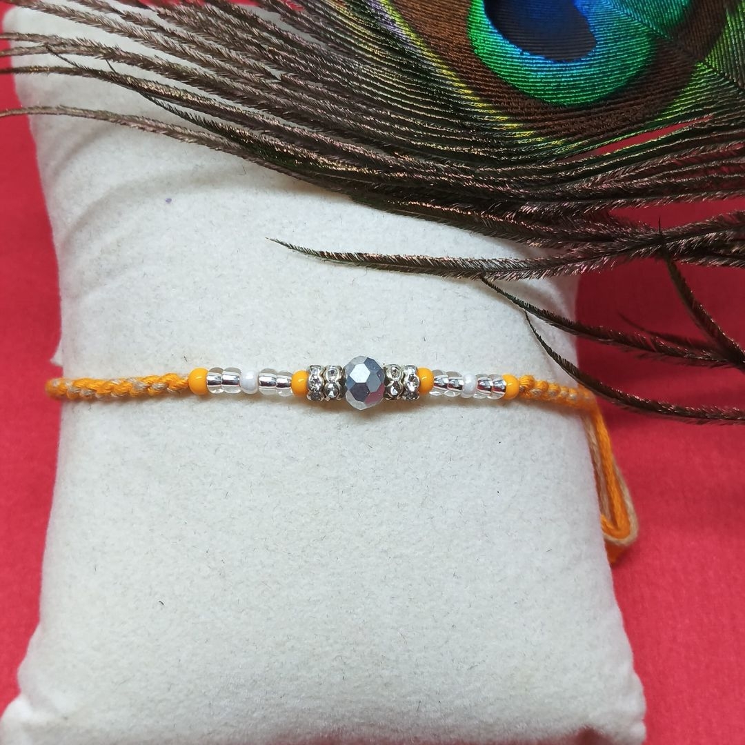 Symbolic Bond: A stylish beaded Rakhi that beautifully represents enduring sibling love.