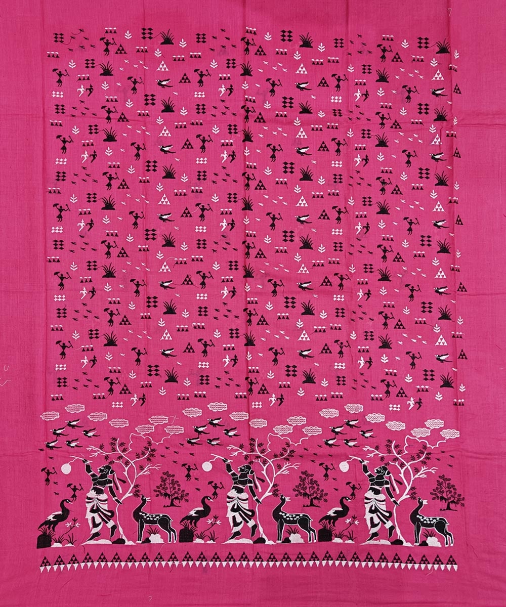 Pink Black Sambalpuri Handwoven Double Ikat Suit SFCSUT2330