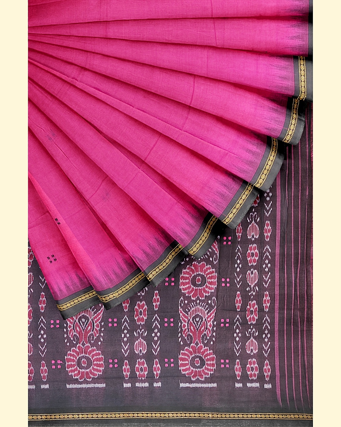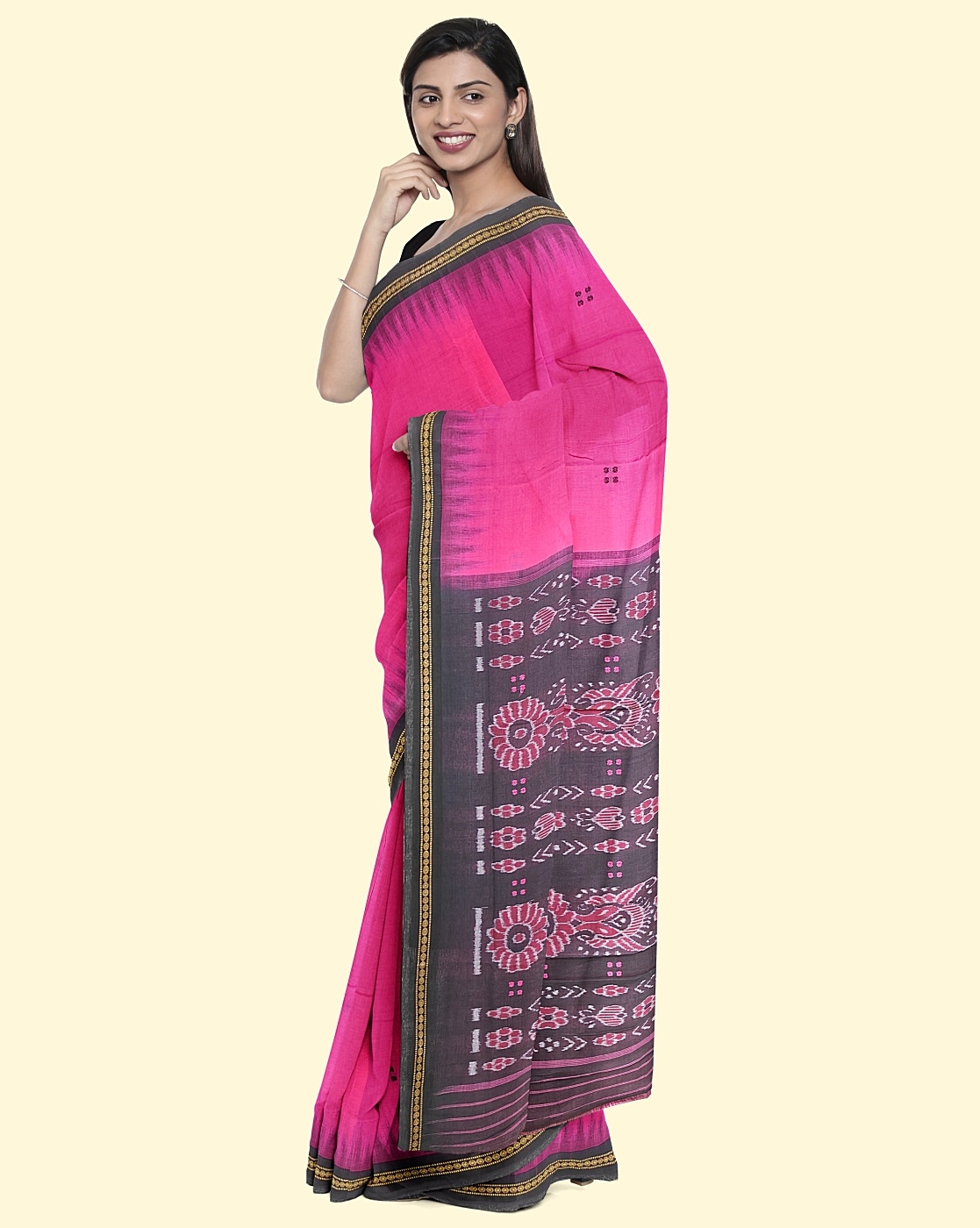 Pink Black Sambalpuri Handwoven Single Ikat Cotton Saree SFCSAR1990