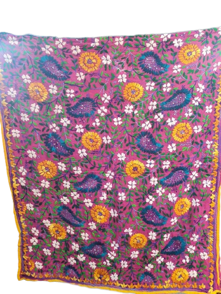 Phulkari (Punjabi: ਫੁਲਕਾਰੀ) refers to the folk embroidery of the Punjab. Although Phulkari means floral work, the designs include not only flowers but also cover motifs and geometrical shapes.The main characteristics of Phulkari embroidery are use of darn stitch on the wrong side of coarse cotton cloth with coloured silken thread. Punjabi women create innumerable alluring and interesting designs and patterns by their skilful manipulation of the darn stitch