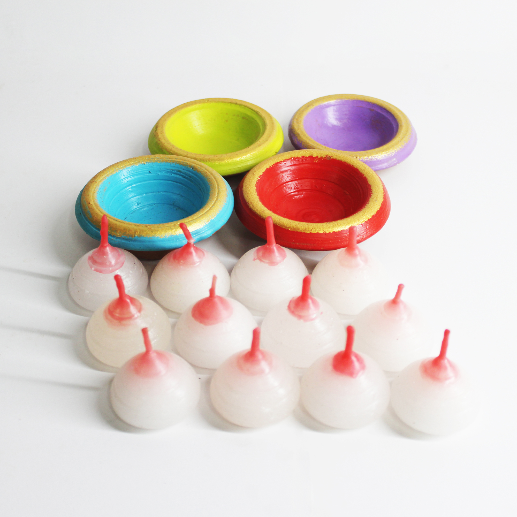 Traditional Diya with a Modern Twist. Pot Series Candle Holders are a collection of vibrant multicoloured ethnic Terracotta Candle Holders with aromatic candles. Candles Holders in the Pot Series come in Red, Green, Blue, Violet with a touch of golden line on the edges. Plato Pot have a wide mouth in the form of a Plate. They come in a set of 4 with complimentary candles. Material : Terracotta. No. Of Candle Holders 4 + complimentary candles