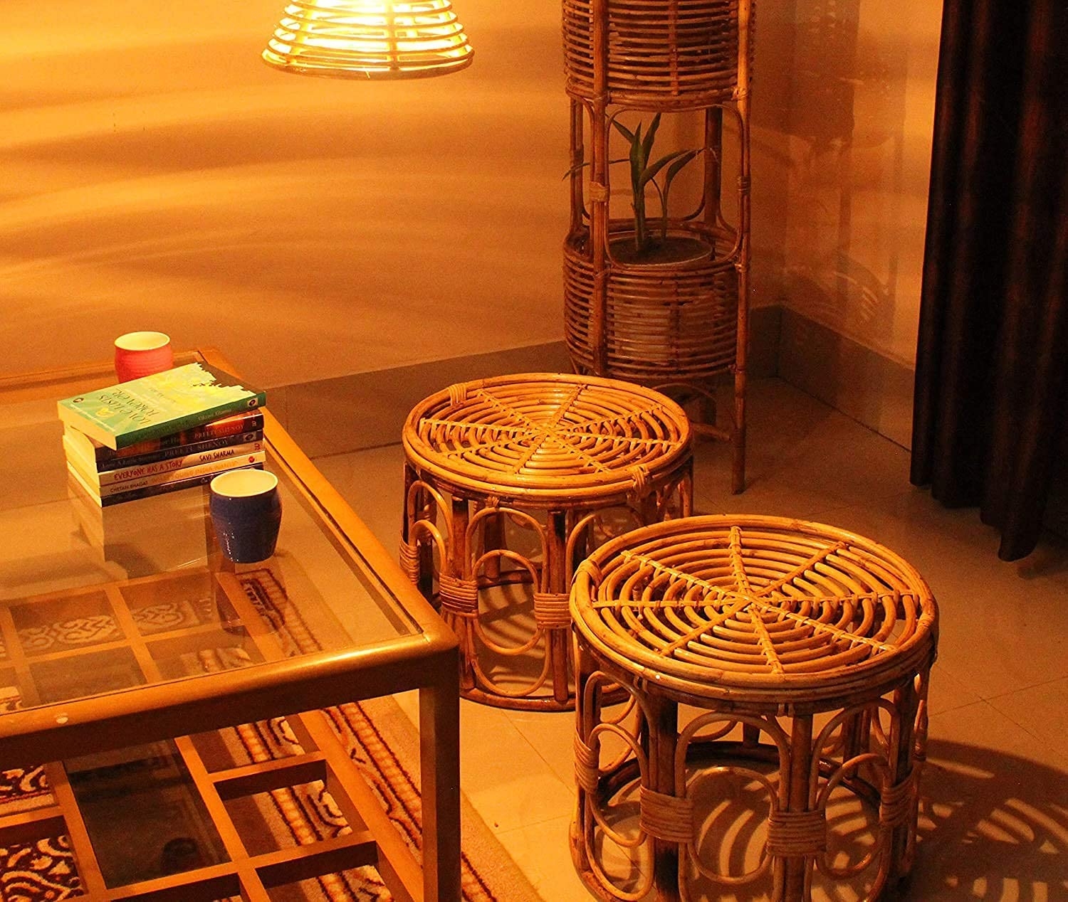 - HANDCRAFTED ARTISANS: This stool is made of natural cane, it takes around 6 working hours for skilled craftsman to design the stool and to give detailing. This stool isn't prepared with chemicals, which gives it a one-of-a-kind enduring decor look. This organic handcrafted decor Stool Mudda is still widely used today as a sustainable effort against plastics.