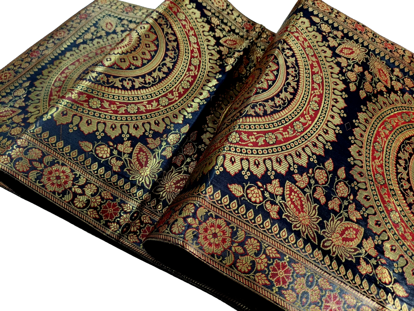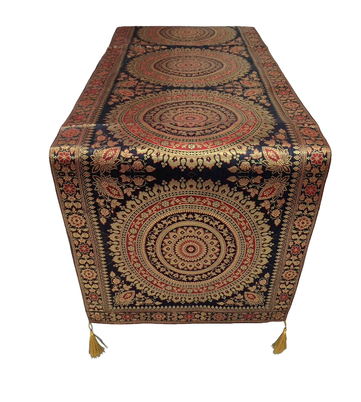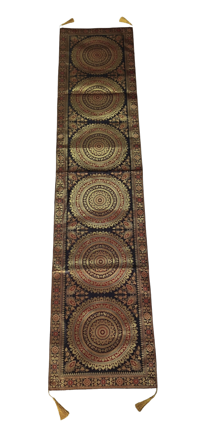 Premium Banarasi Brocade Silk Table Runner -Ethnic Mandala Design 16 x 72 inches - 6 Ft Long, Black
