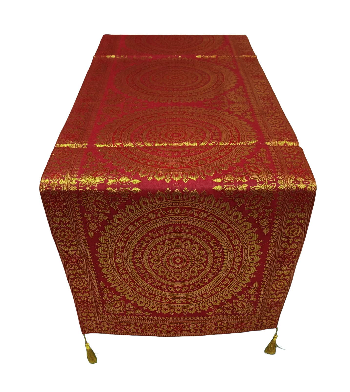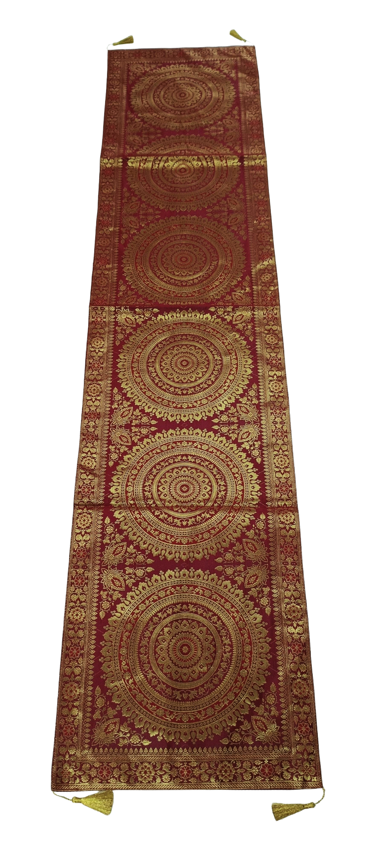 Premium Banarasi Brocade Silk Table Runner -Ethnic Mandala Design 16 x 72 inches - 6 Ft Long - Maroon