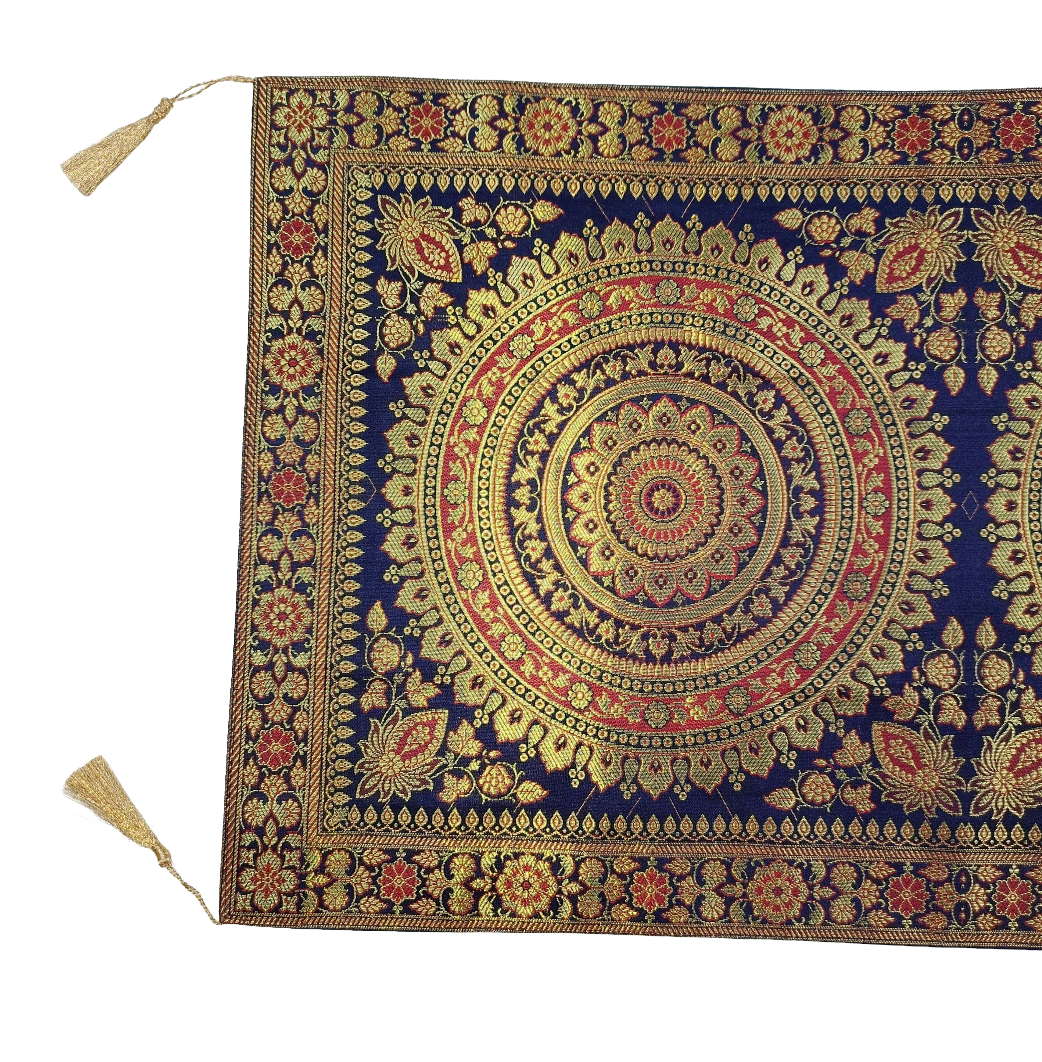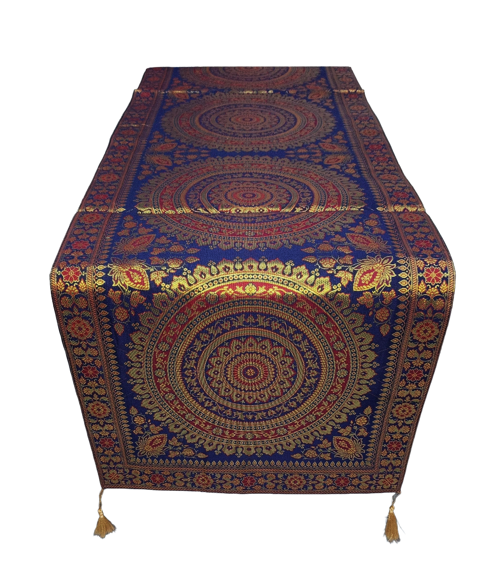 Premium Banarasi Brocade Silk Table Runner -Ethnic Mandala Design 16 x 72 inches - 6 Ft Long- Navy Blue