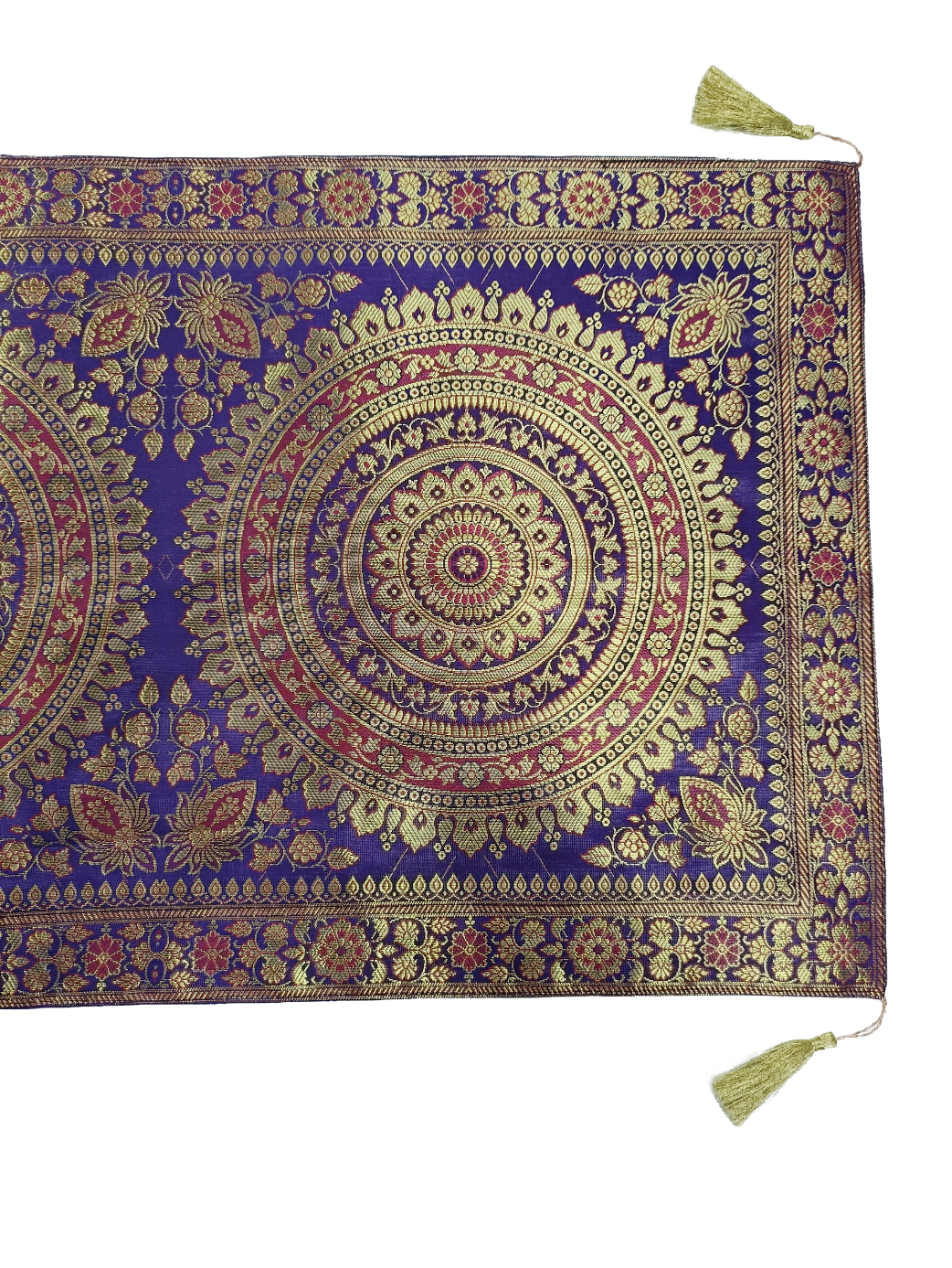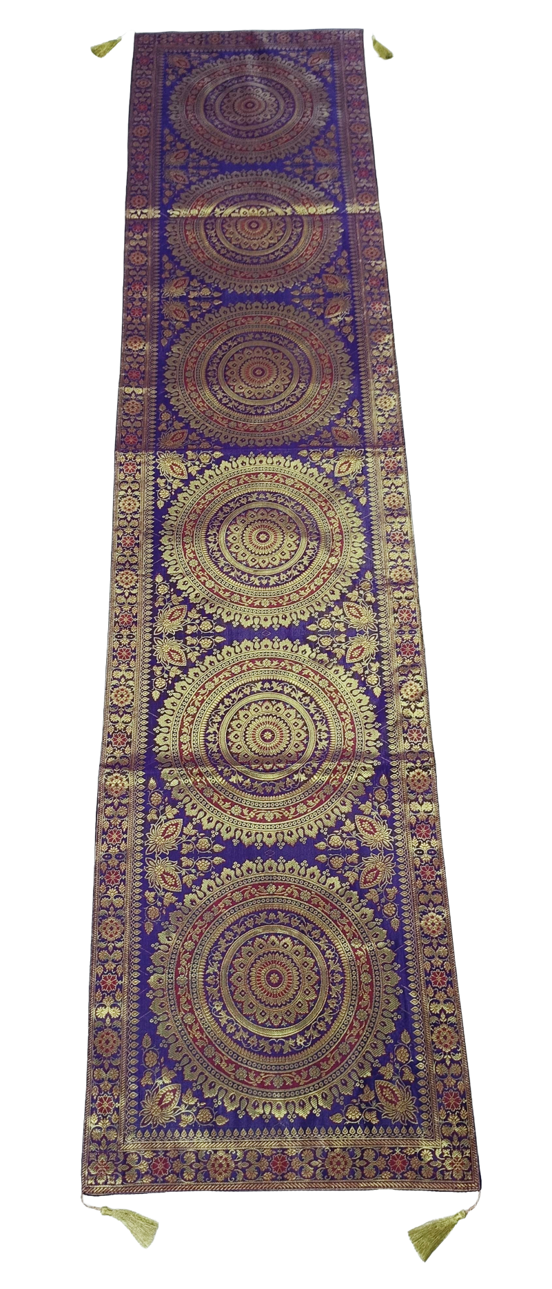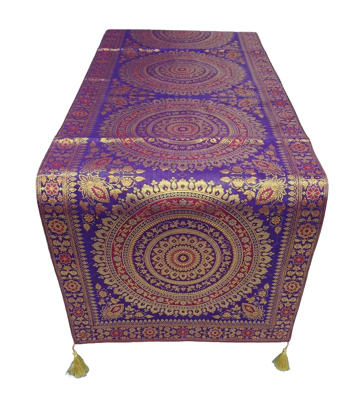 Premium Banarasi Brocade Silk Table Runner -Ethnic Mandala Design 16 x 72 inches - 6 Ft Long - Voilet