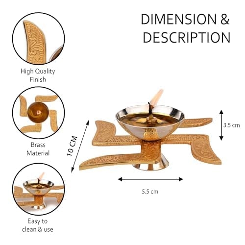 - Ergonomically Designed: This Swastik Diya is beautifully crafeted with brass. The glossy finish and the sculpted artwork are pleasant to the eye, diya adds the quiet and meditative nature to your pooja room.