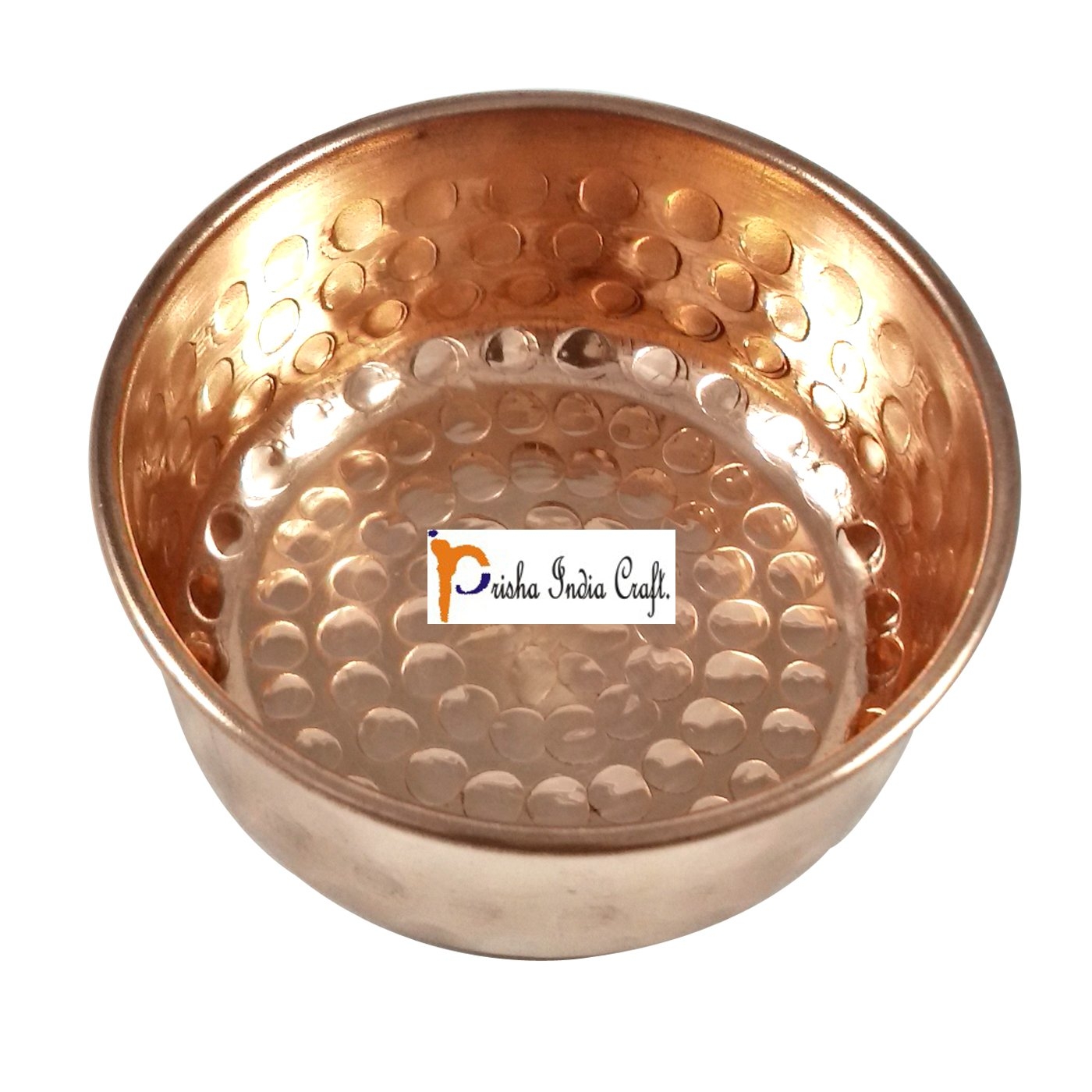 Prisha India Craft Hammered Design Pure Copper Serving Bowl, 3.5 Inch, Set of 2