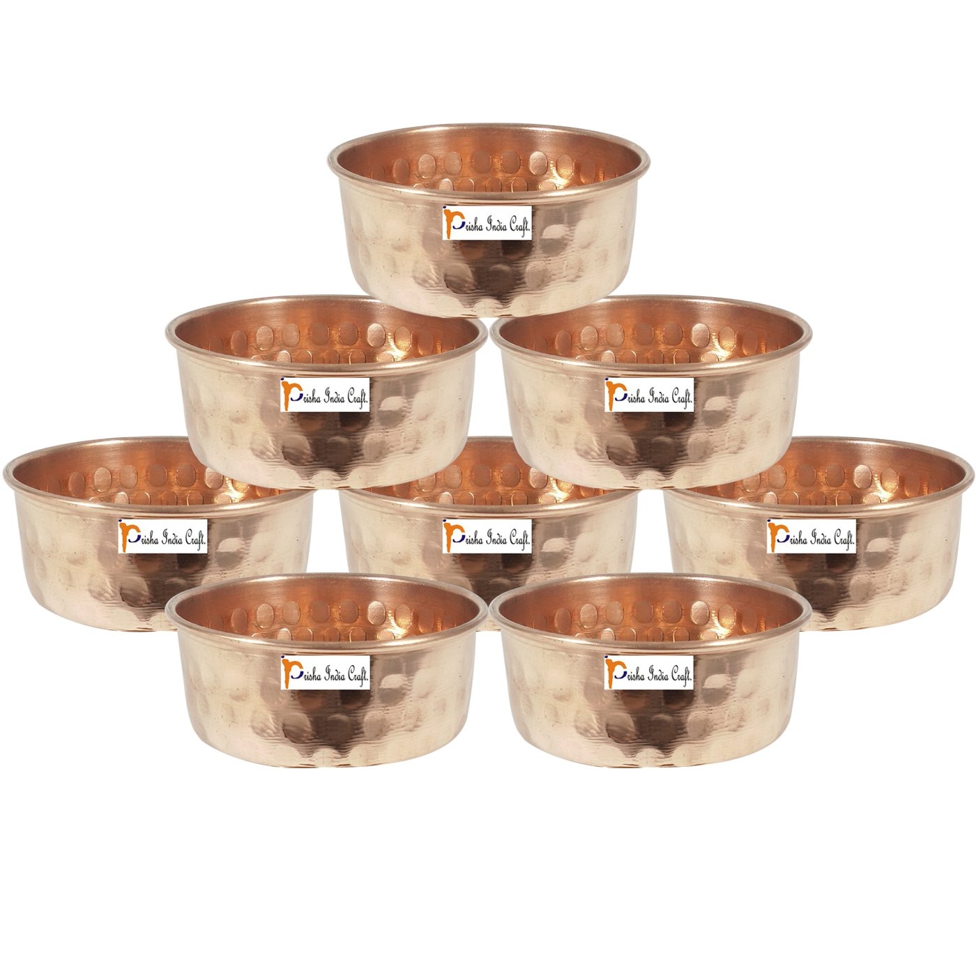 Prisha India Craft Hammered Design Pure Copper Serving Bowl, 3.5 Inch, Set of 8