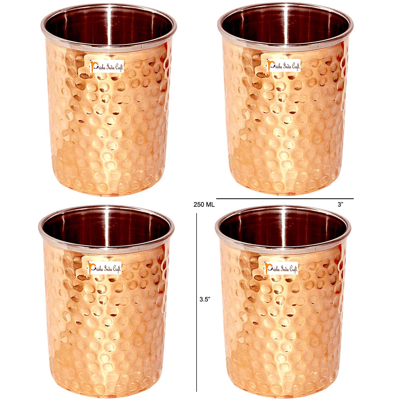 Hammered Copper Water Tumbler Glass | Capacity 250 ML | Set of 4