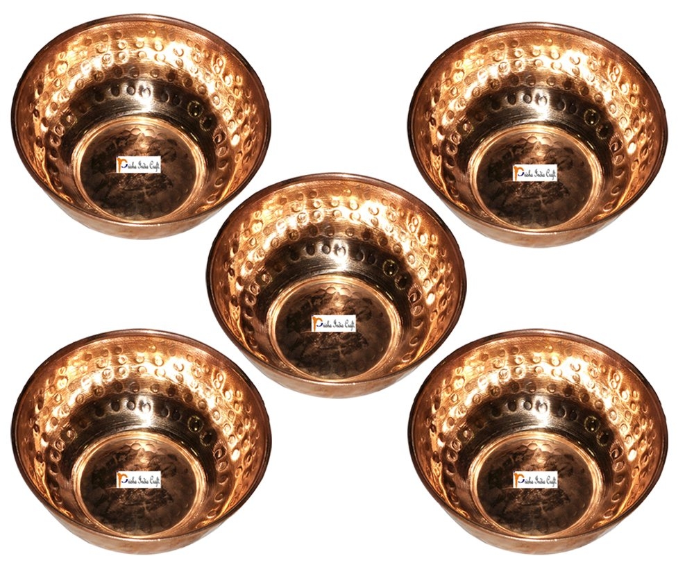 Prisha India Craft Hammered Omega Copper Serving Bowl 320 ML Set of 5