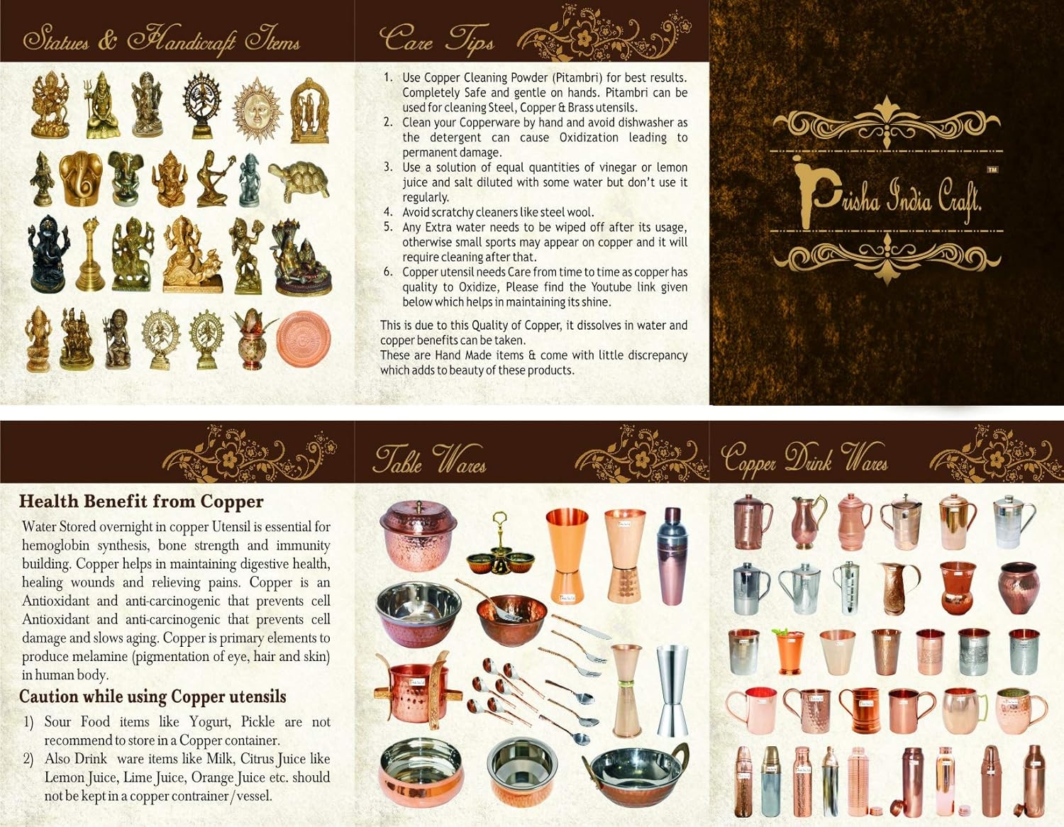 - Features prisha india craft pure copper dinner thali set, serveware & dinnerware, 6 pieces, color: copper, material: pure copper, each thali size: height: 1.50 inch, diameter/width: 11.50 inch, weight: 490 gram | each bowl size: height: 1.50 inch, diameter/width: 5.00 inch, capacity: 150 ml