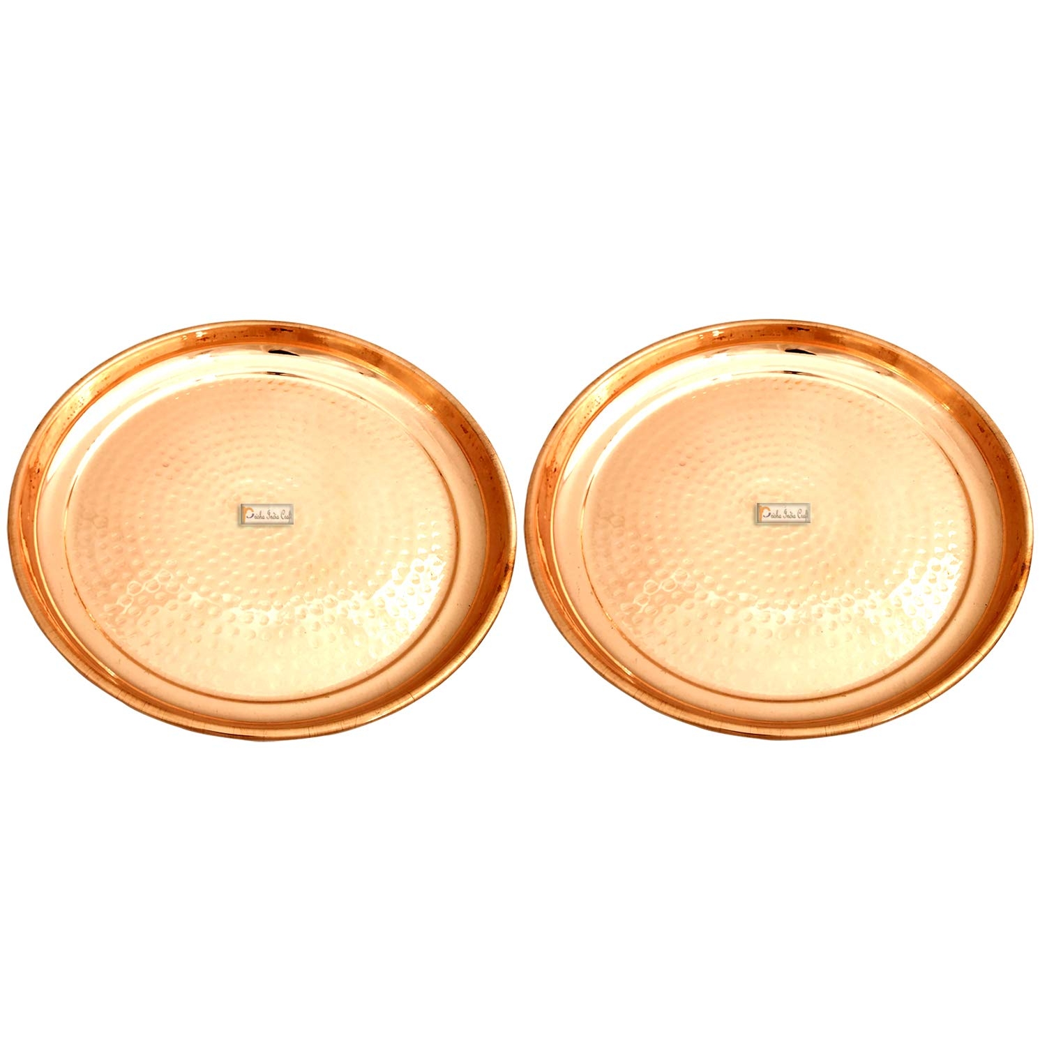 Prisha India Craft Pure Copper Hammered Serving Dinner Thali Plate set of 2