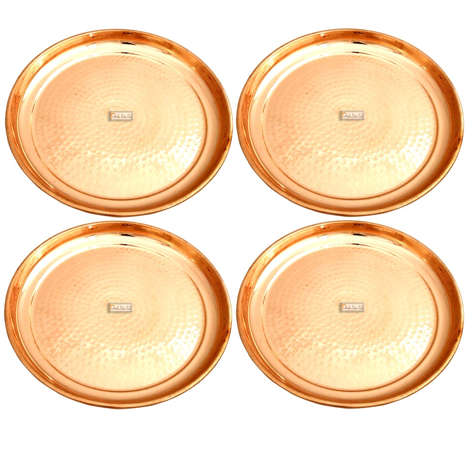 Features: prisha india craft pure copper hammered dinner thali, set of 4, color: brown, material: pure copper, each thali size: weight: aprox 490 gram, height: 1.50" inch, width/diameter: 11.50" inch,