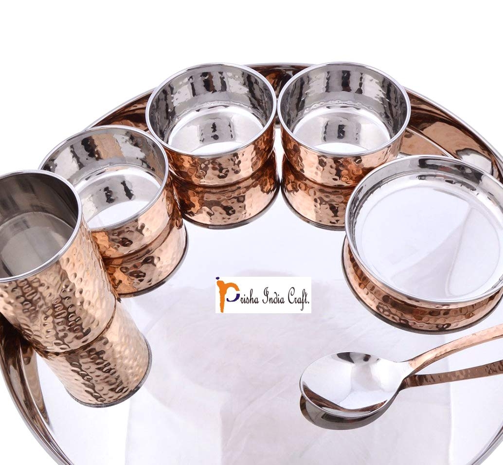 Prisha India Craft Steel Copper Dinner Thali Set Diameter 13 inch