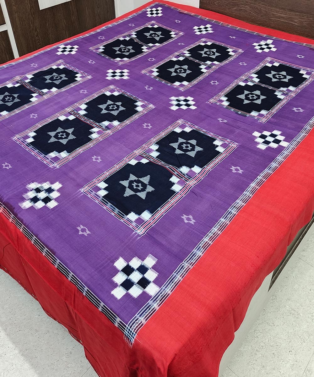 Purple Red Sambalpuri Handwoven Cotton Double Bed Sheet SMCBED1278