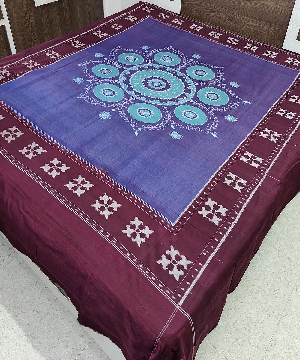 Purple Sambalpuri Handwoven Cotton Double Bed Sheet SMCBED1287
