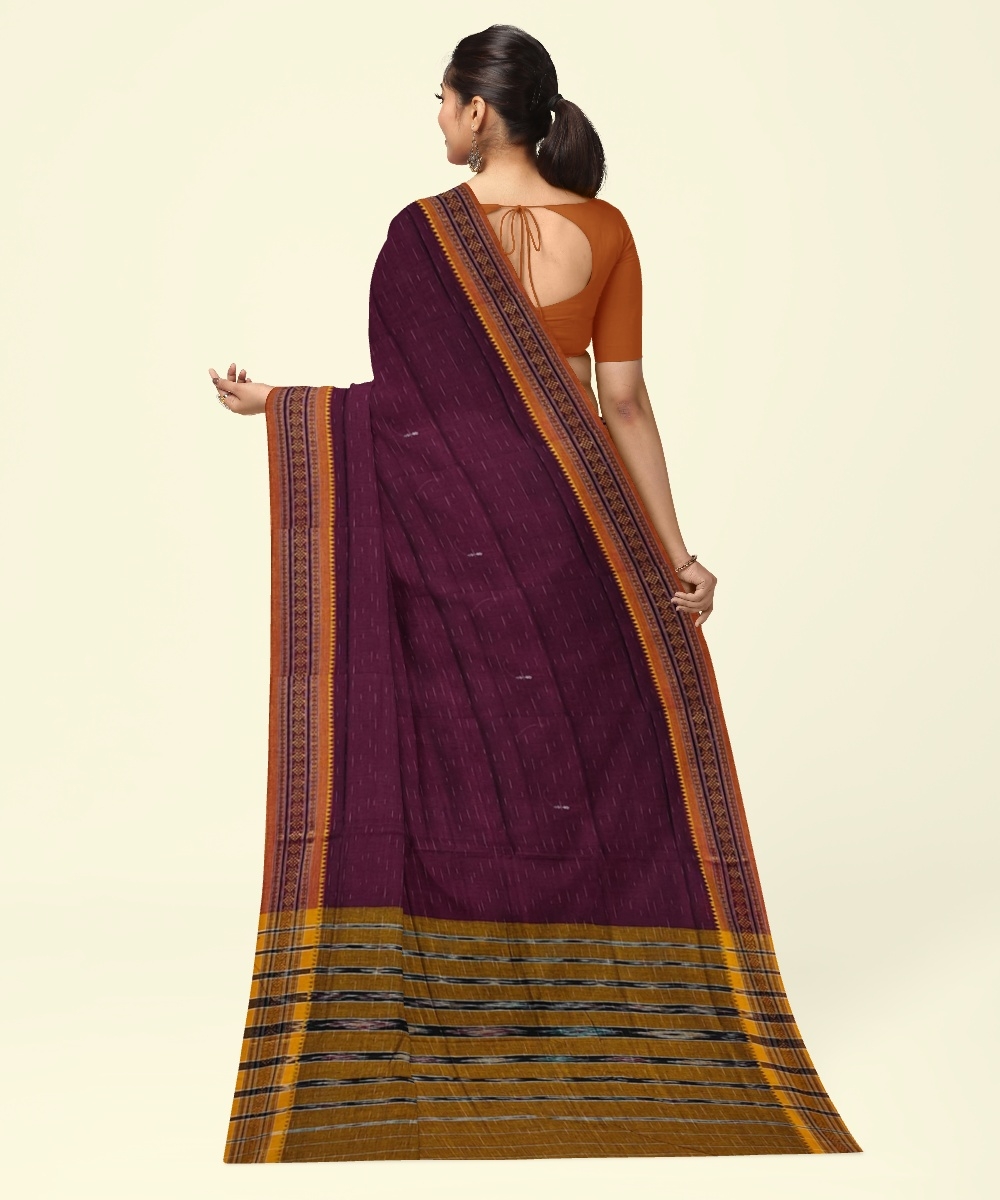 Purple Yellow Sambalpuri Handwoven Single Ikat Cotton Saree SFCSAR2199