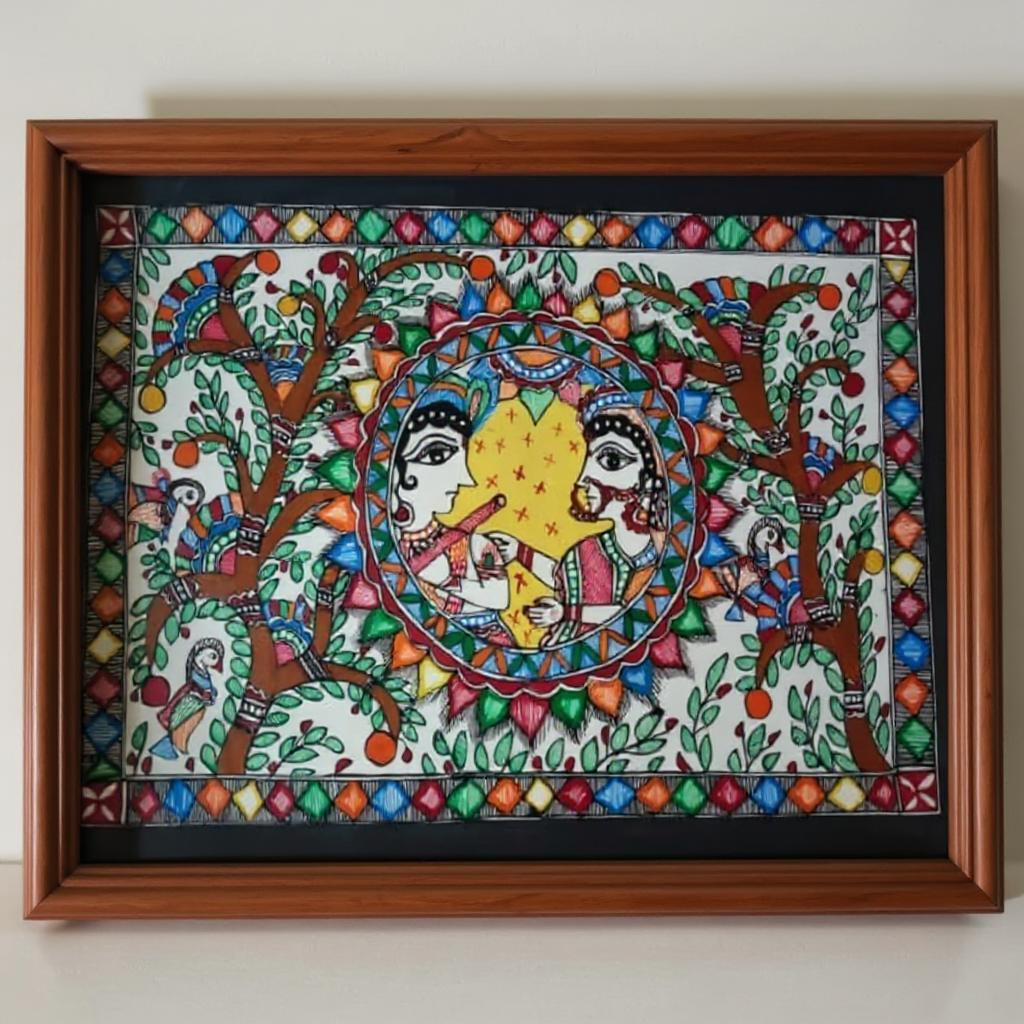 Radha Krishna Handmade Madhubani painting without frame