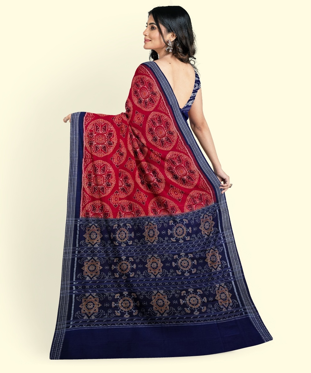 Red Blue Sambalpuri Handwoven Single Ikat Cotton Saree SFCSAR2258