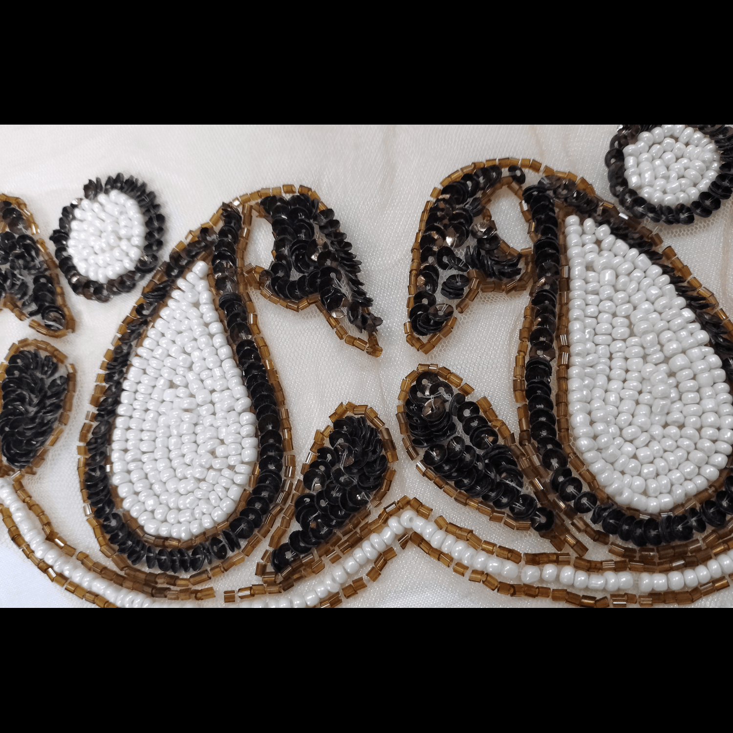 Decorated with black, white, and golden beads