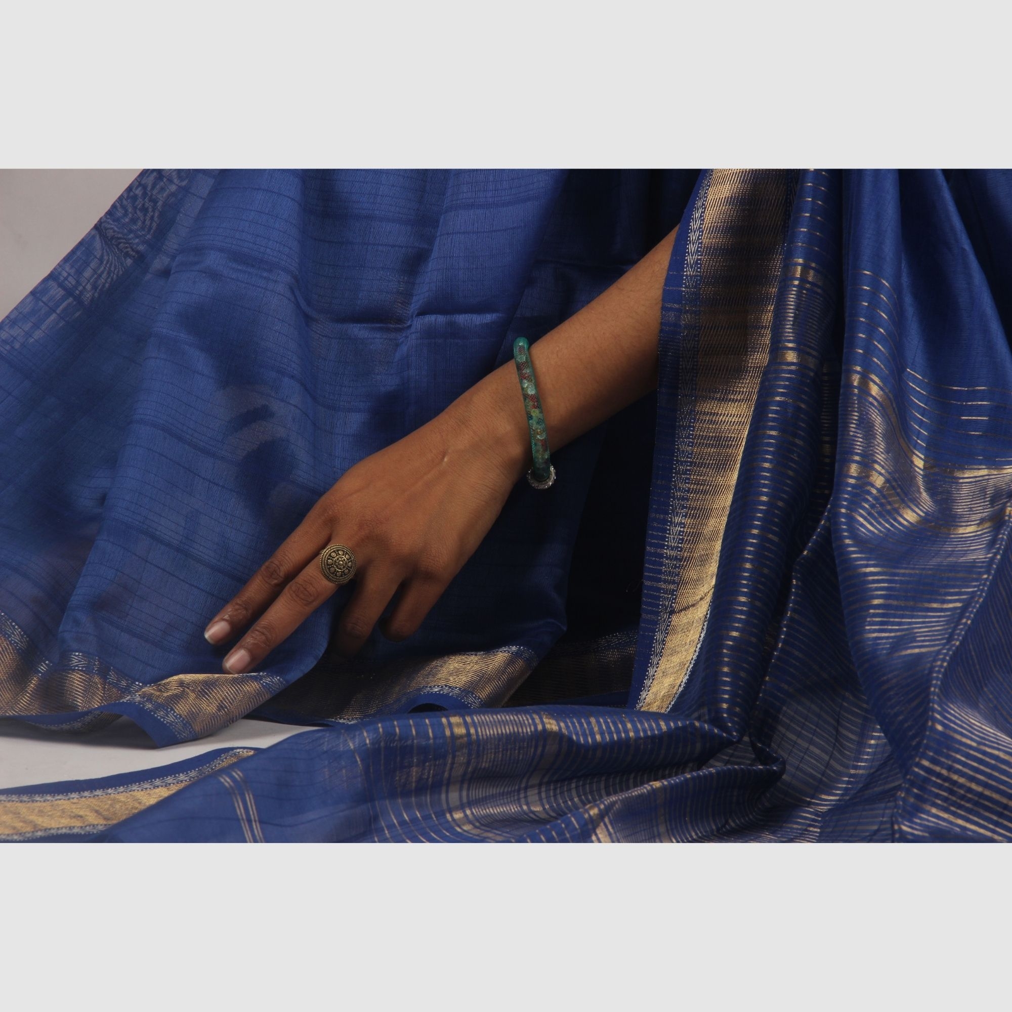 • Graceful golden zari woven border