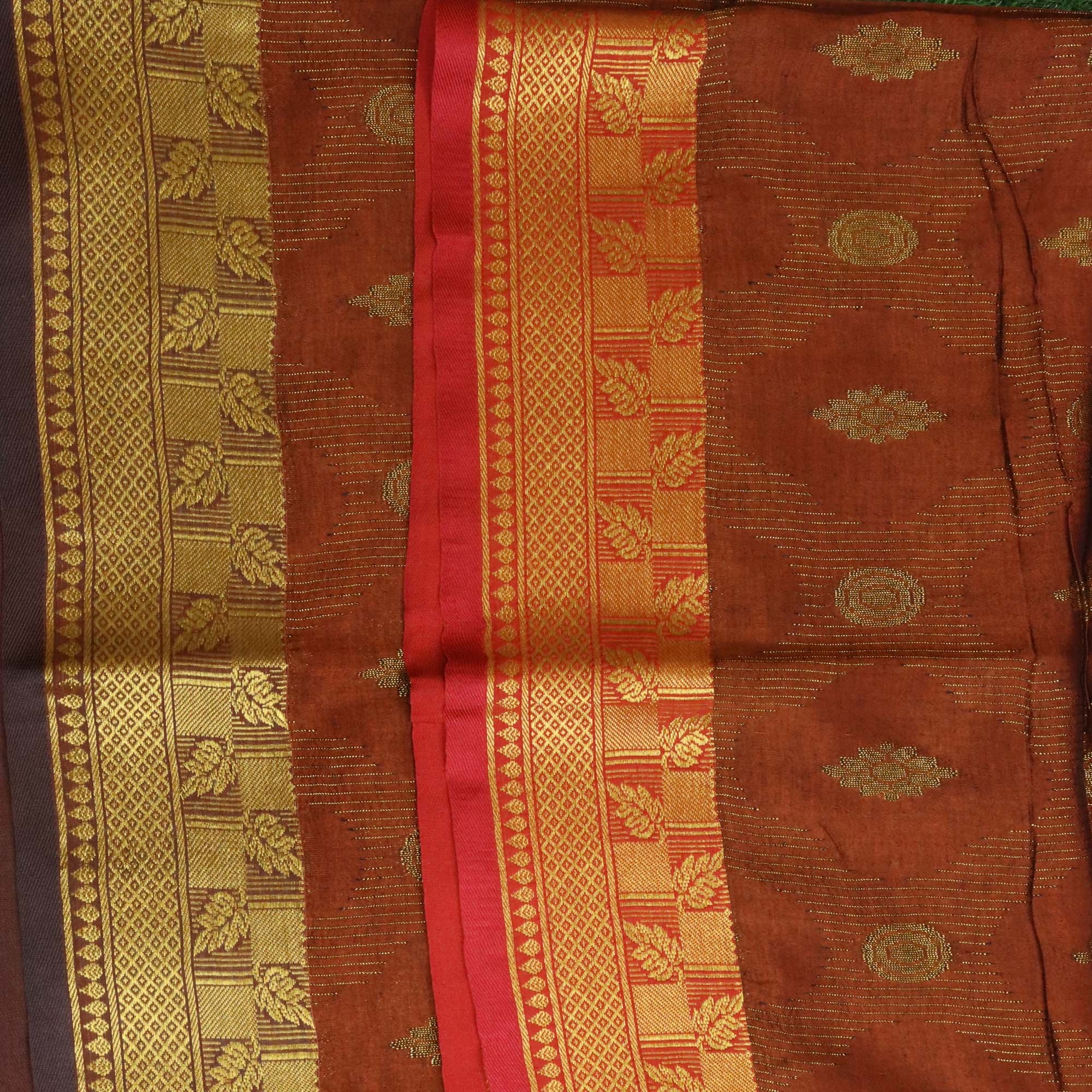 Rust Bengal Handloom Katan Silk Zari Emboss Saree