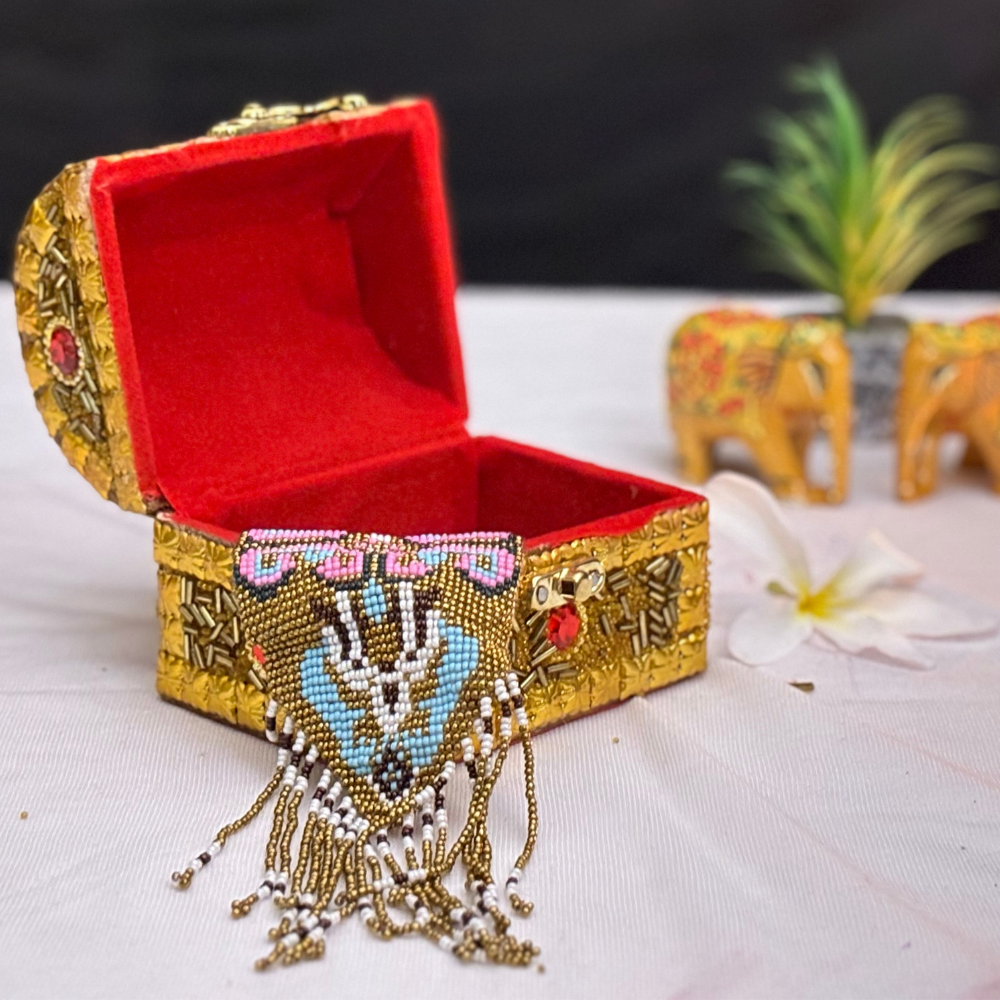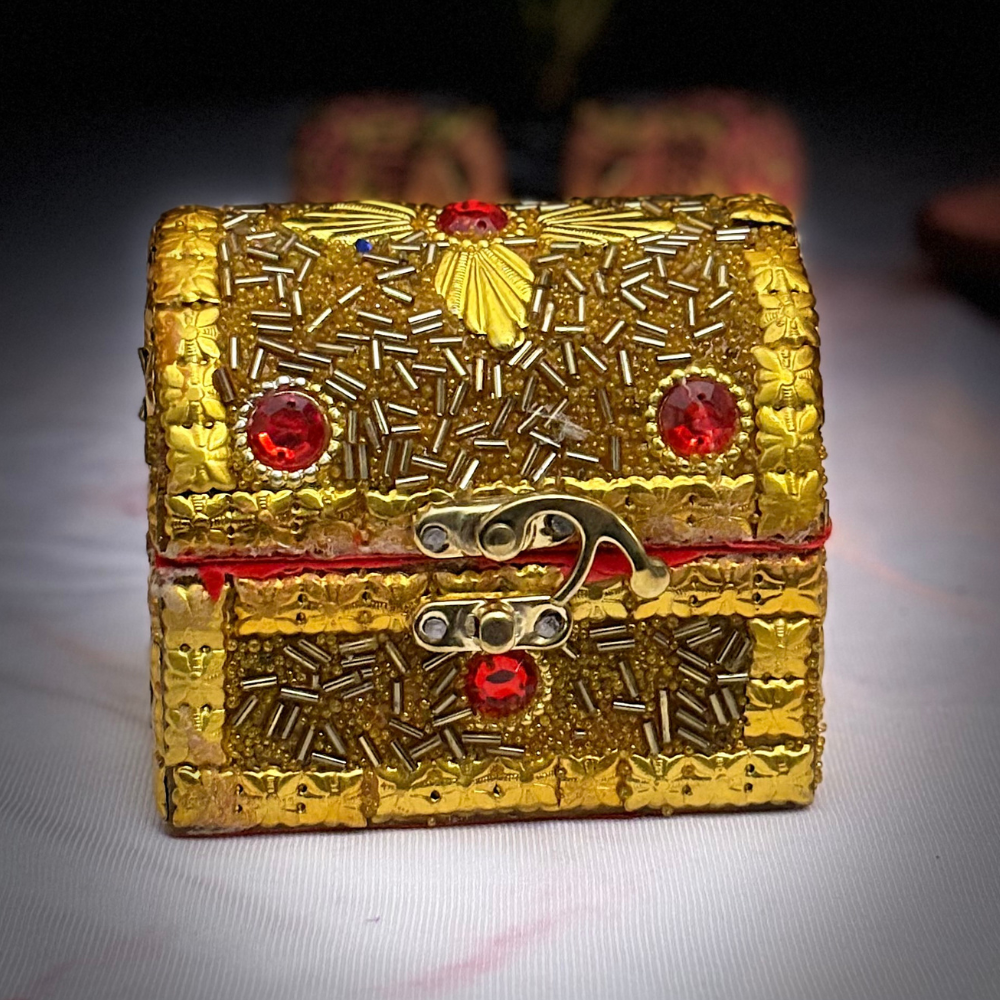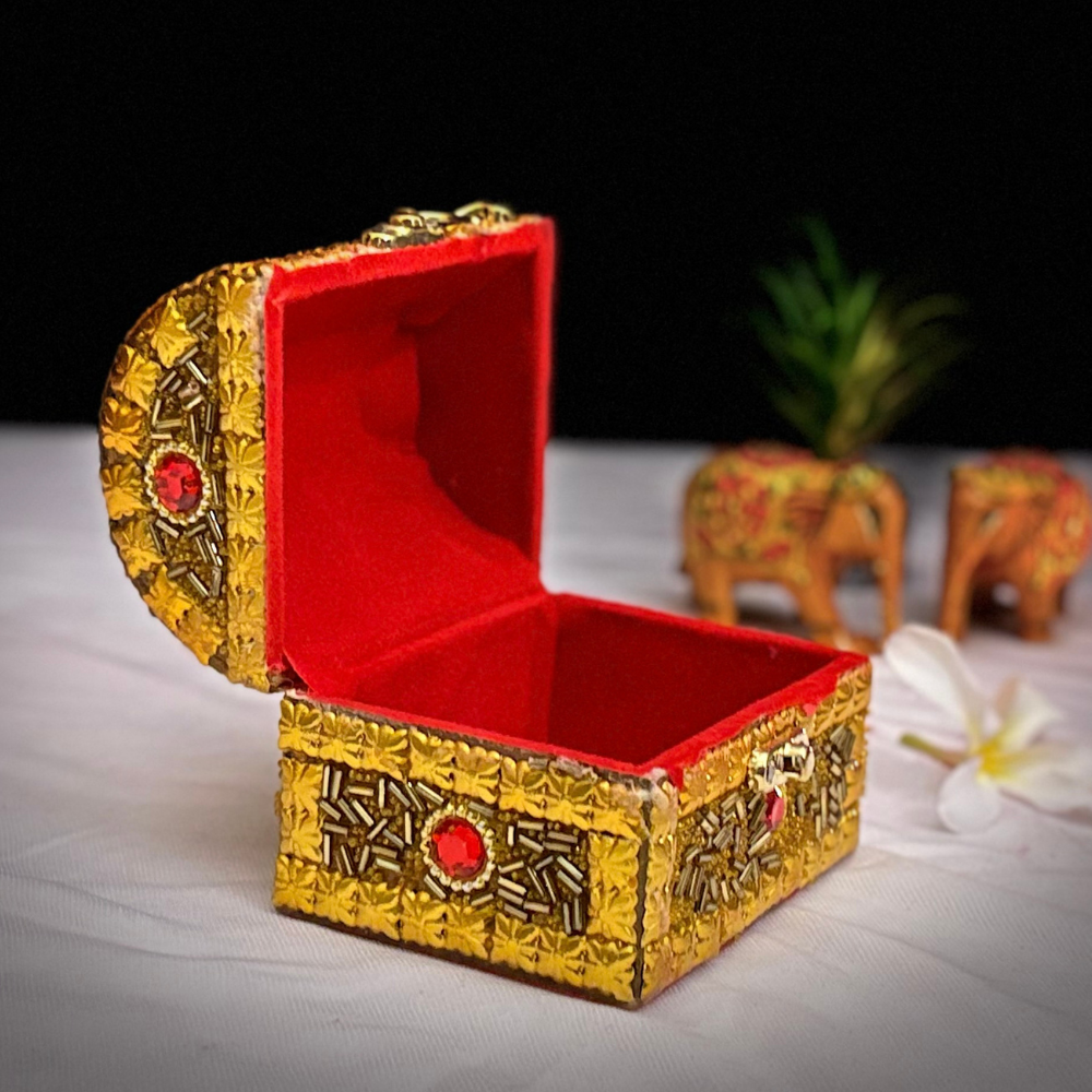 Handcrafted Golden Jewellery Box | Velvet Lining Inside & Bottom | Durable Handmade Storage Box