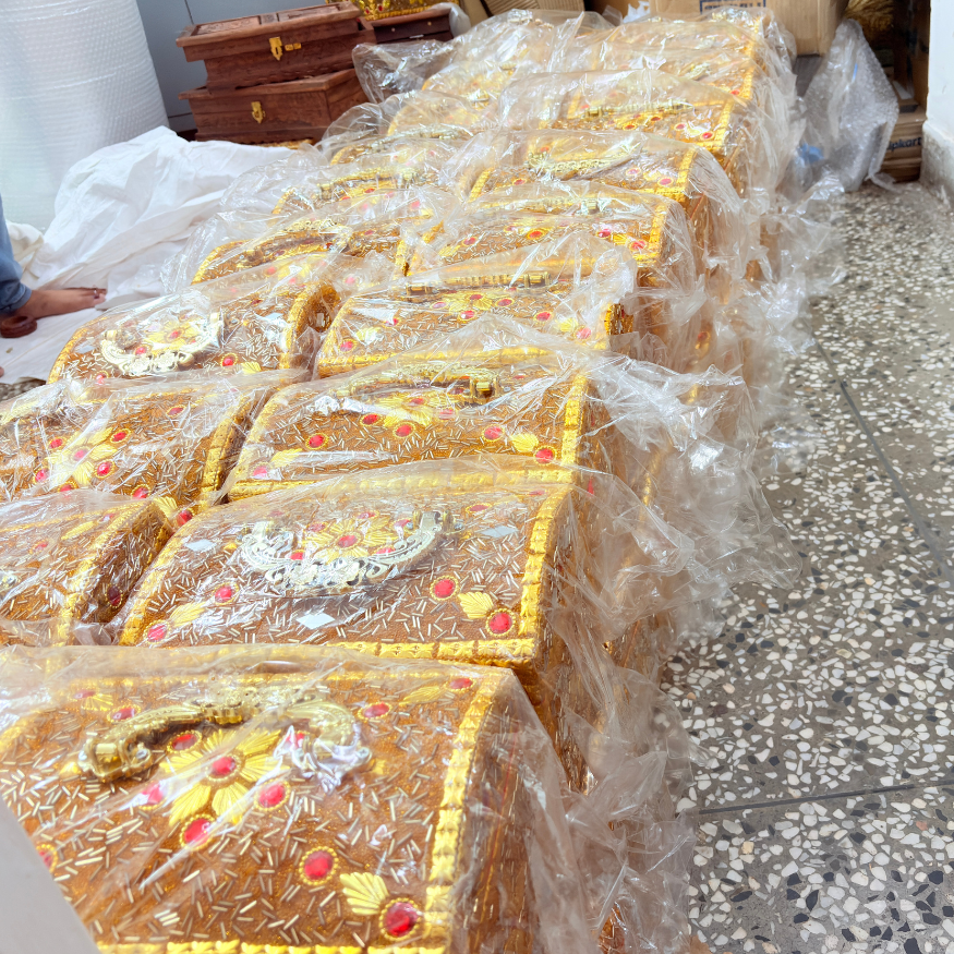 Santarms Handcrafted Golden Vanity Box | Elegant Bangle Storage Box | Handmade in India