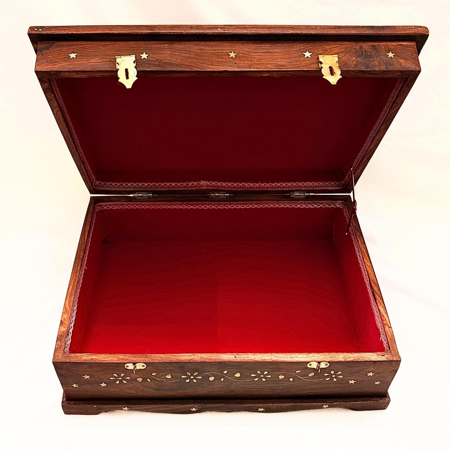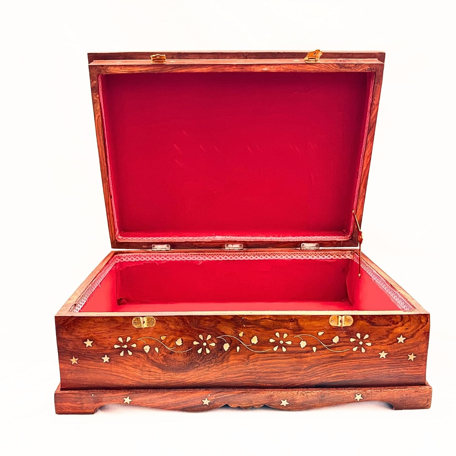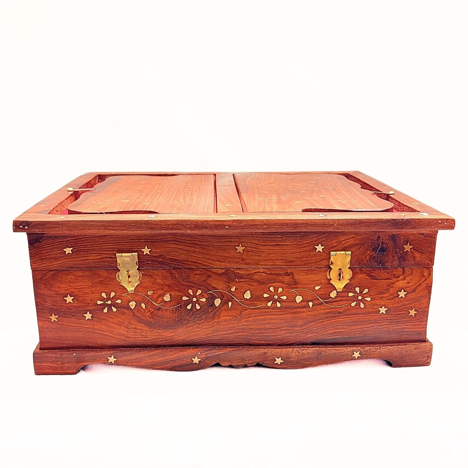 Santarms Handmade Sheesham Wood Large Ramayana Box Rehal Storage Box with Brass Inlay Wooden Book Reading Stand for Heavy Books Gita and Ramayan with Lock