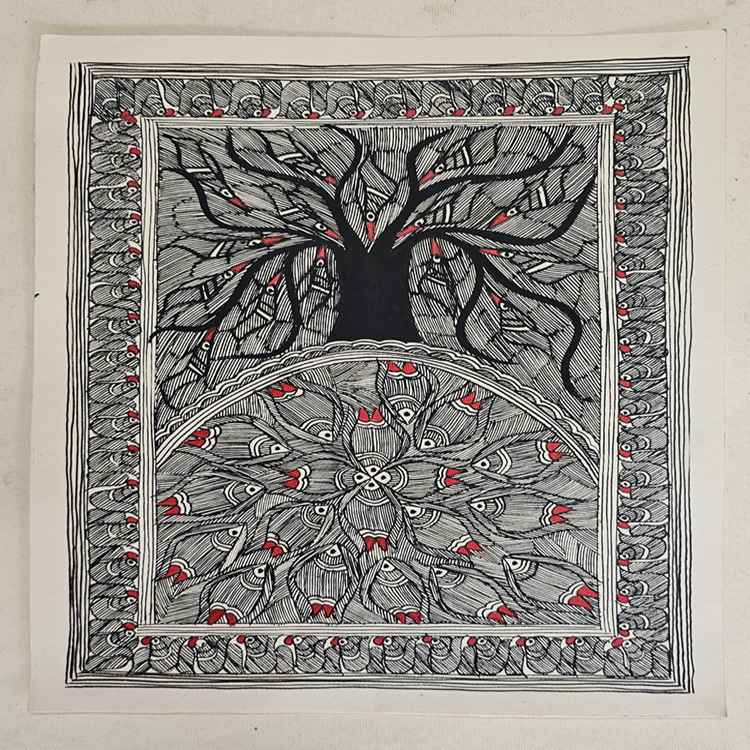 Celebrate the timeless beauty of India’s folk art with this handcrafted Madhubani painting.