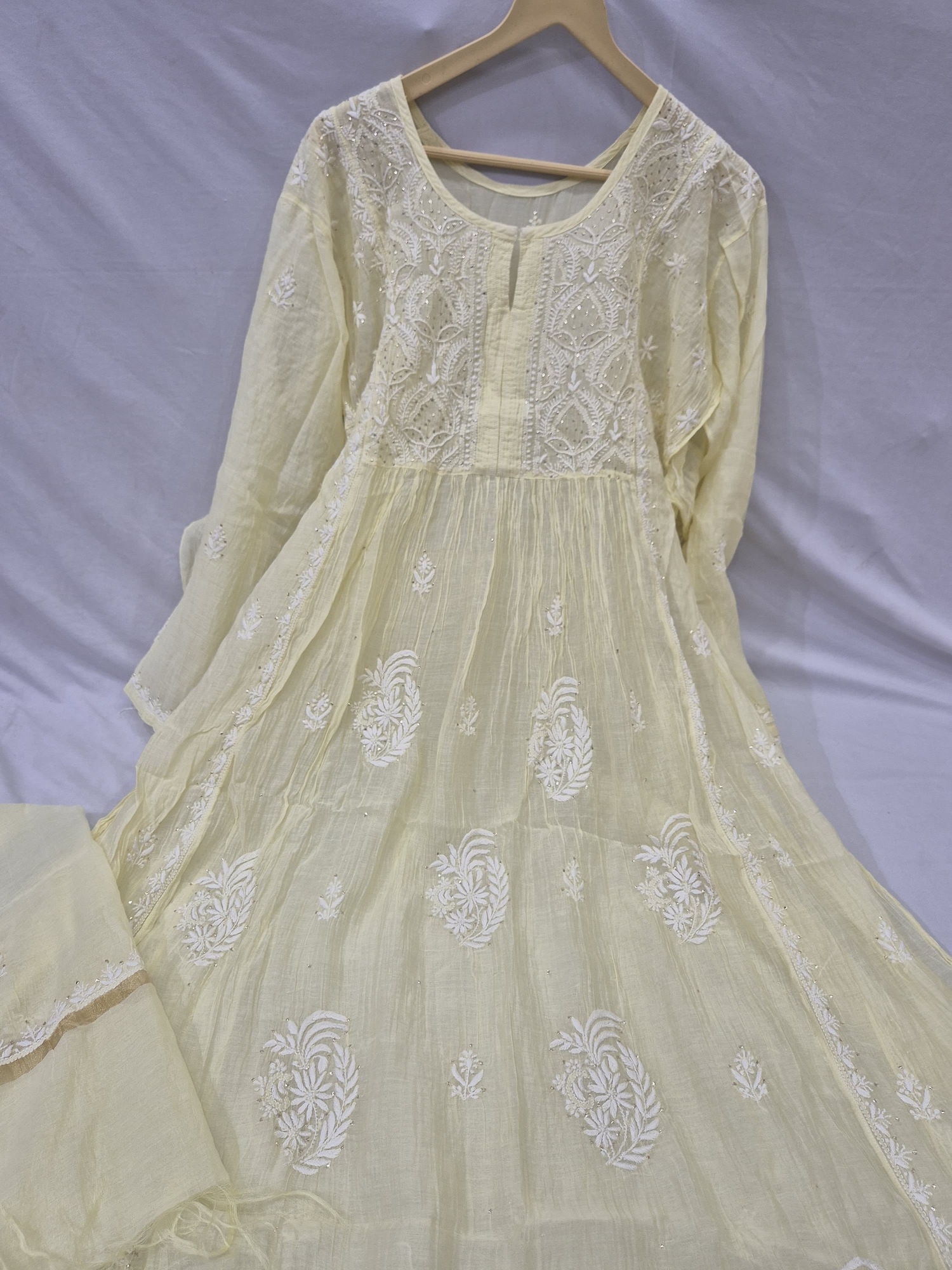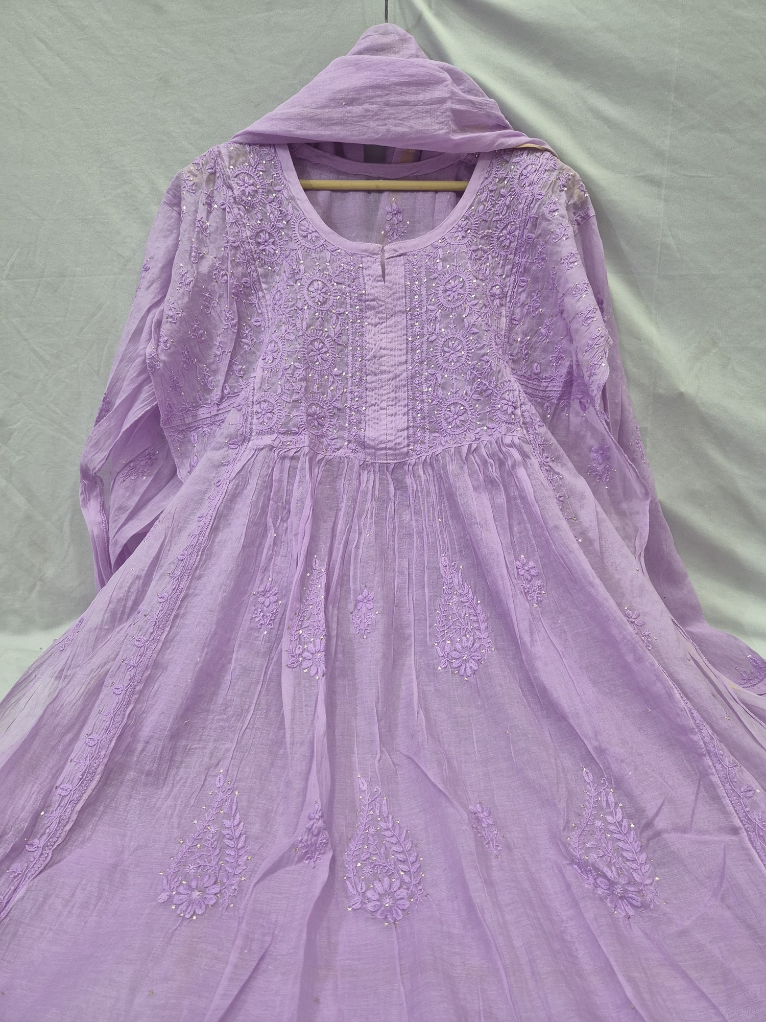 Semi-Stitched A-Line Gown with Chikankari & Mukesh Work