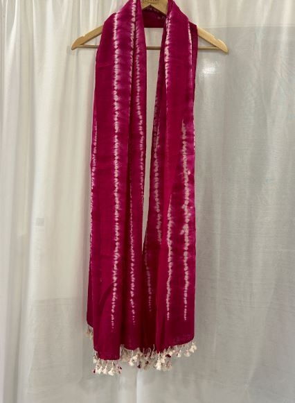 Shibori Stole Pink, Handwoven, Pure Marino Wool