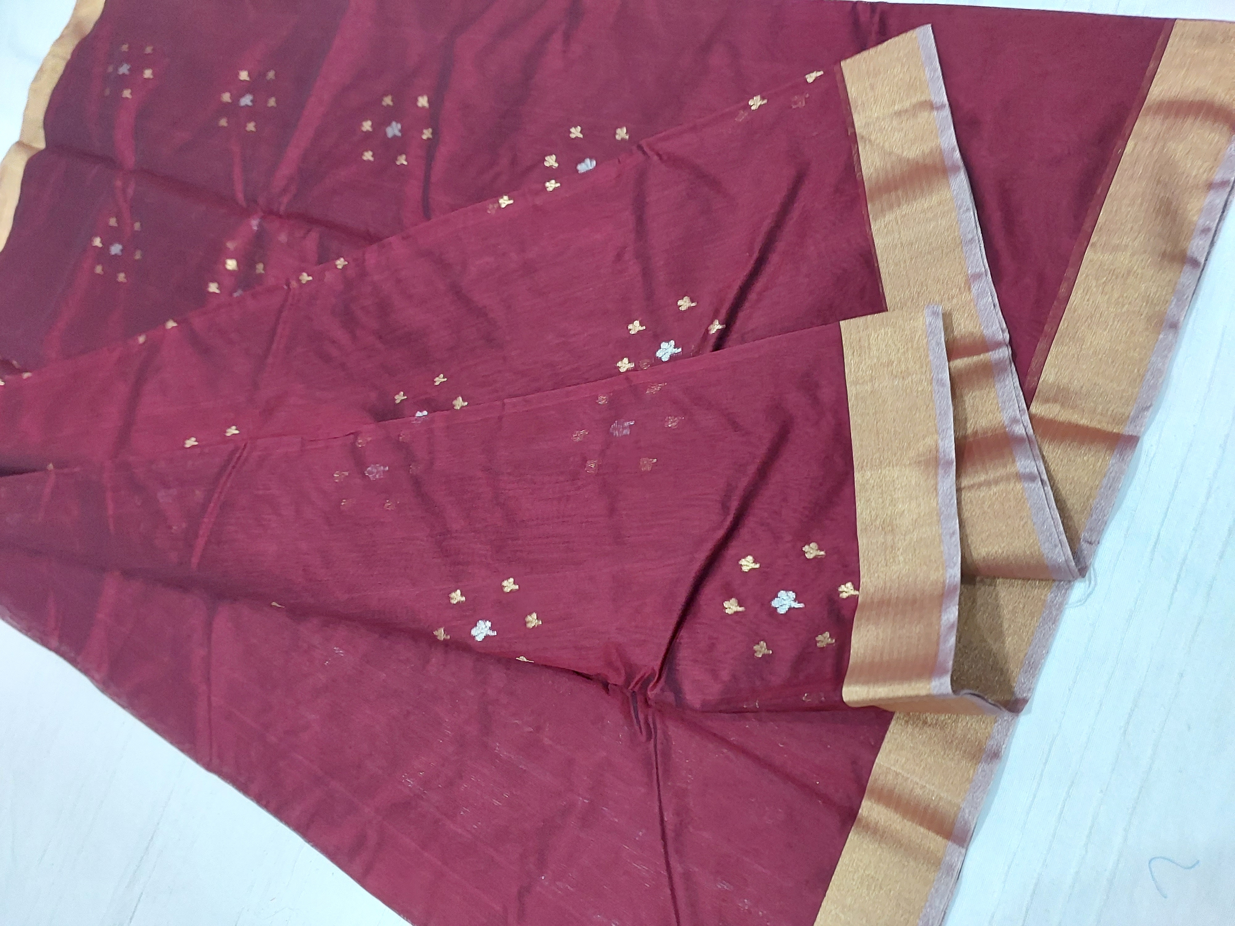 Chanderi Silk Saree | Maroon | 6.25 Mtrs