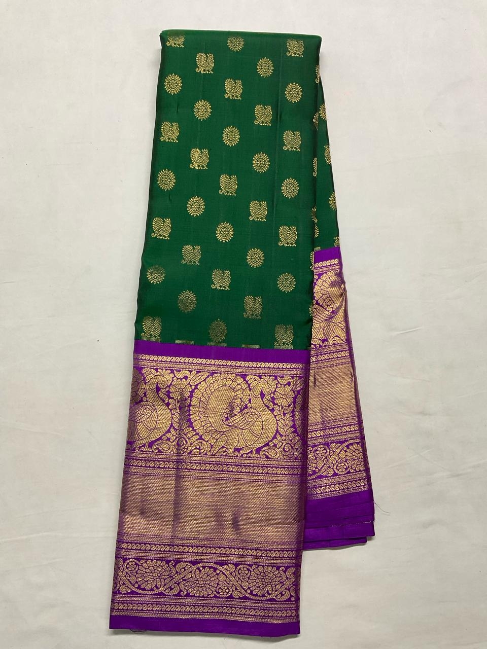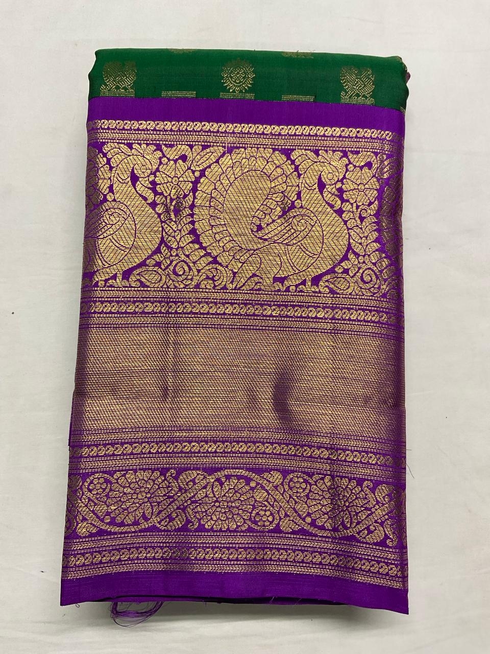 To maintain the brilliance of the green color and the silk's natural sheen, please dry wash only. Store your saree in a cool, dry place, away from direct sunlight, and handle it with care to preserve its beauty and quality