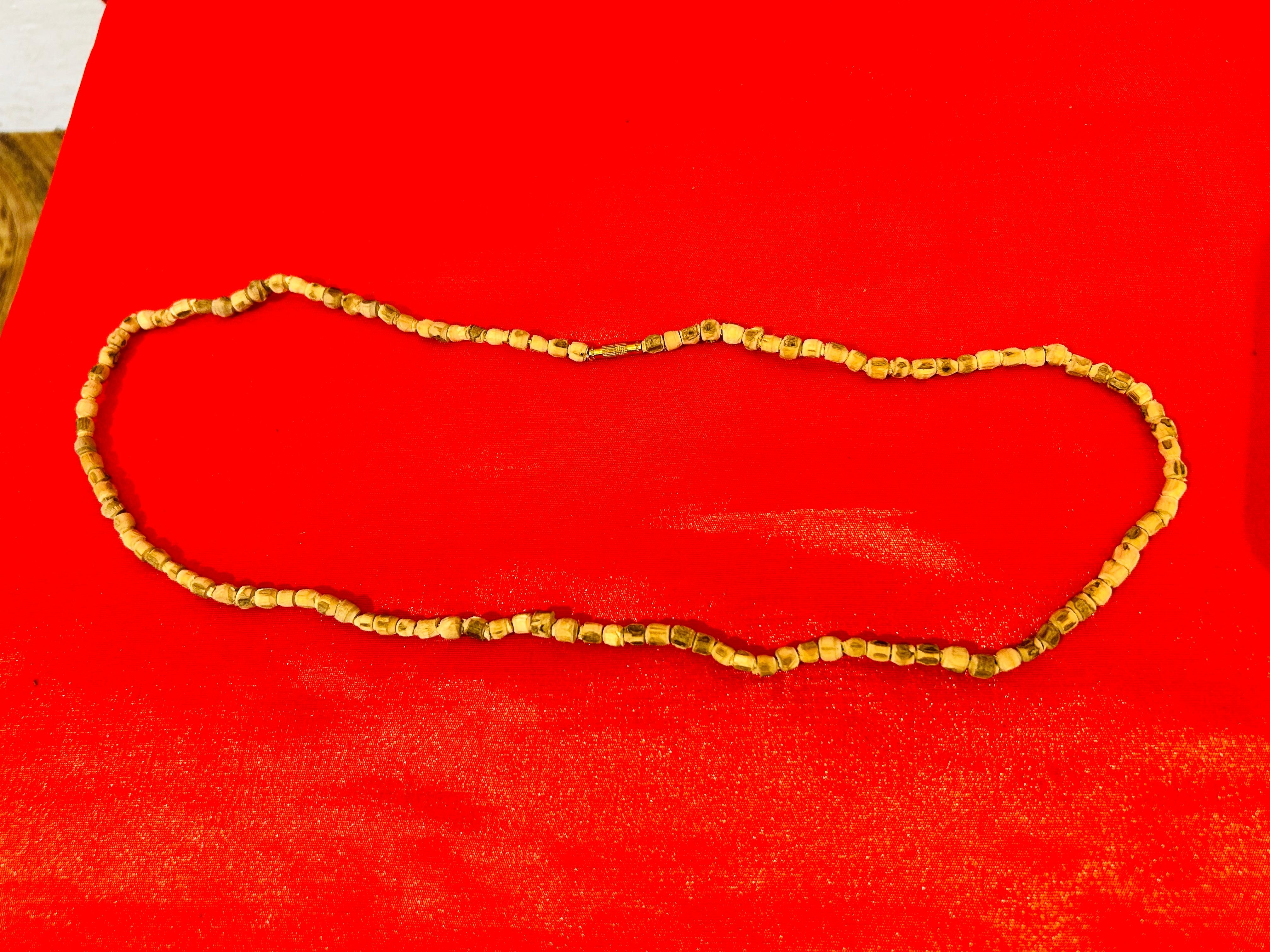 Crafted from the sacred Tulsi wood, this 108-bead Jap Mala is a symbol of purity and devotion. Known for its divine properties, Tulsi is deeply rooted in Indian spiritual traditions. The Tulsi Jap Mala, originating from Jait village in Uttar Pradesh, is perfect for those seeking inner calm through meditation or daily prayers.