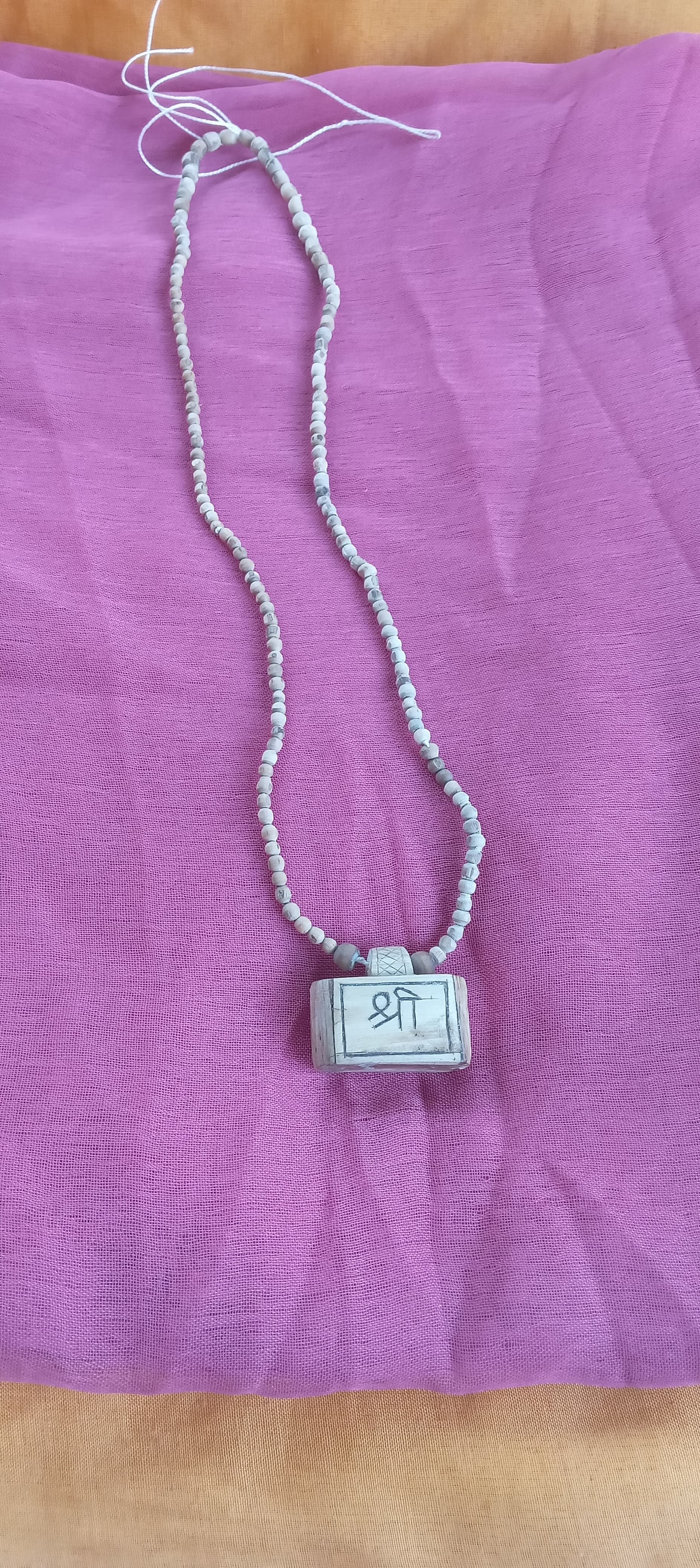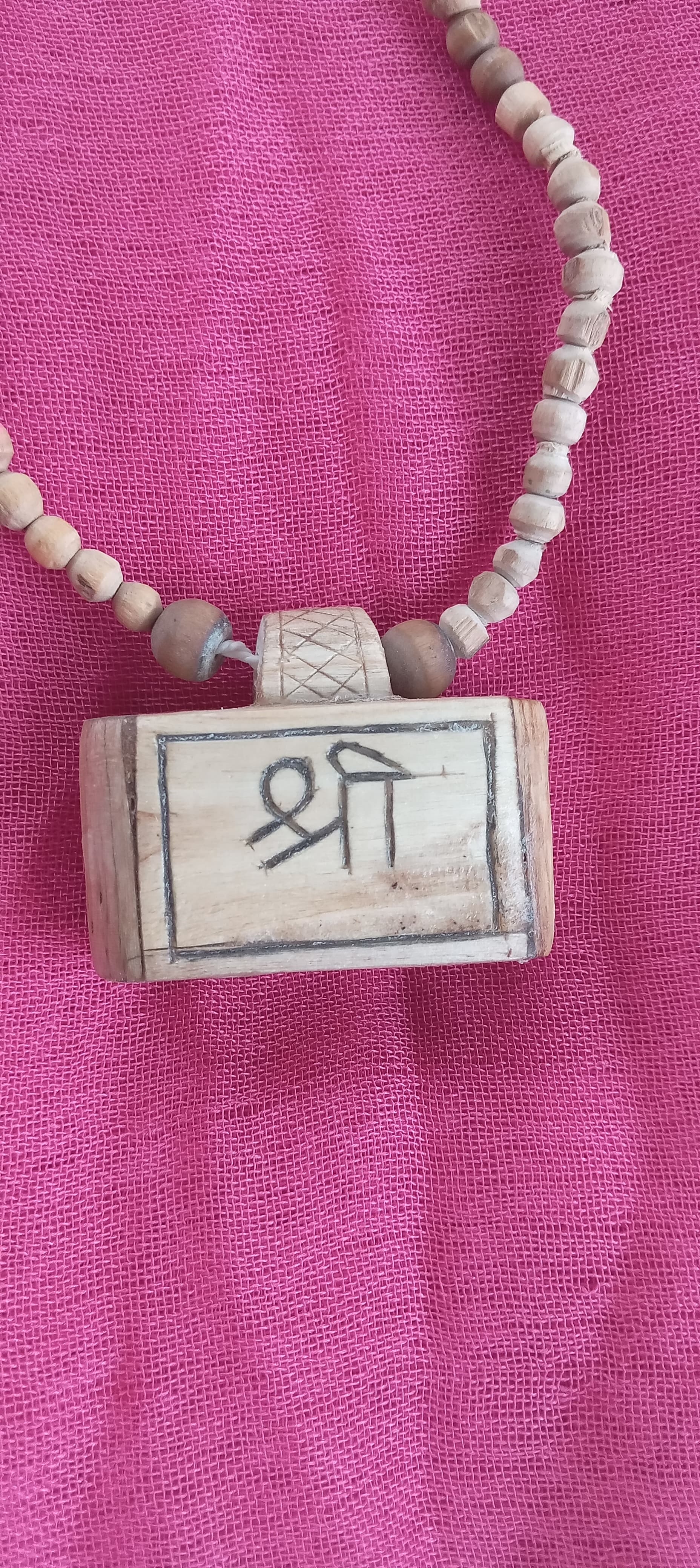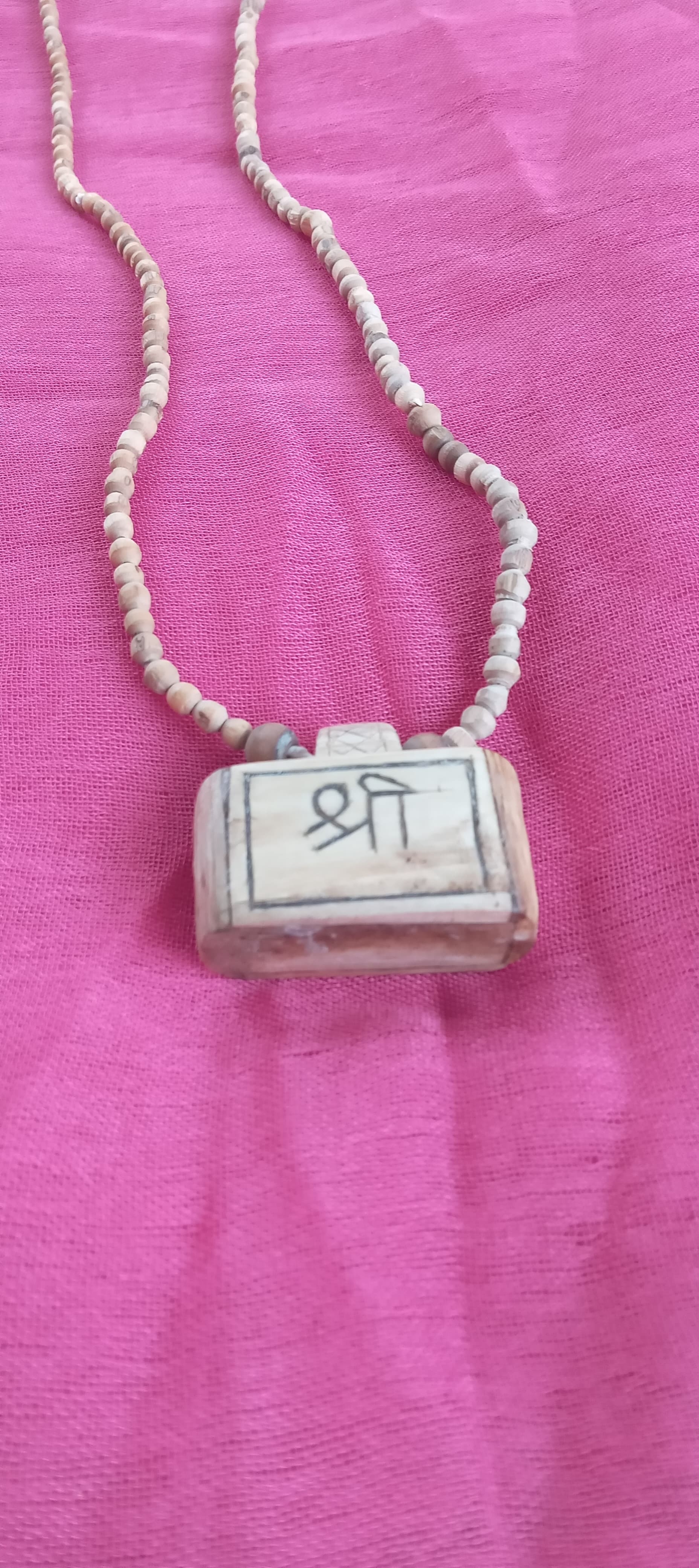 It is Single round neck Tulsi Mala, 100% made from stem and root in Tulsi wood. Tulsi wood does produce by farming in Jait village mathura. Jait village is origin of Tulsi production and Tulsi Kanthi is being made since more than 100 years in village.. Shri Bhakt Mala is being prepared by Mahant Sh. Gaur Gopal Das at Vrindavan.