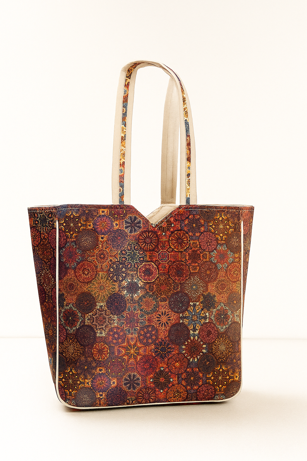 Silk Multi-Color Printed Tote Bag for Women | Ethnic Handcrafted Shoulder Bag | Lightweight Shopping & Casual Carry Bag