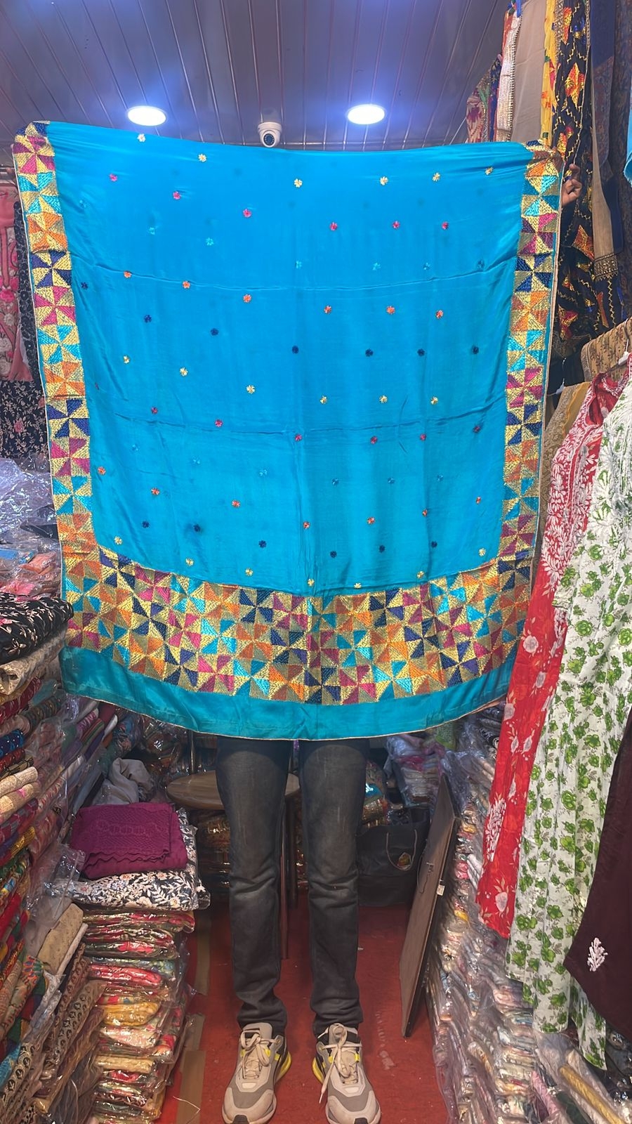 Sky Blue colour Pure chinon Chiffon base Hand Embroidered Phulkari Dupatta