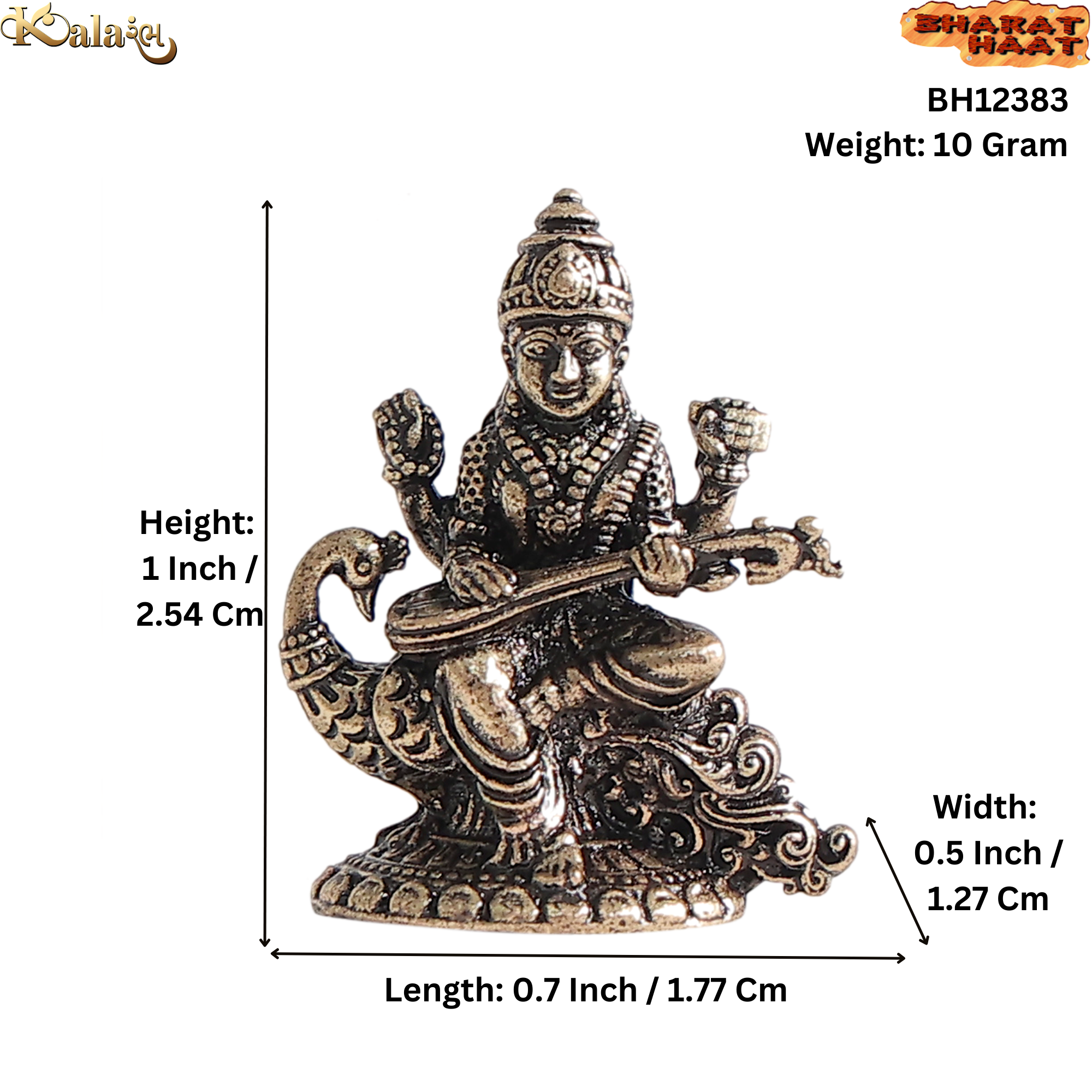 This lightweight idol (10 grams) is easy to maintain and made from durable brass that ensures long-lasting shine. It is also a thoughtful gifting option for students, teachers, housewarming ceremonies, and festivals like Vasant Panchami.