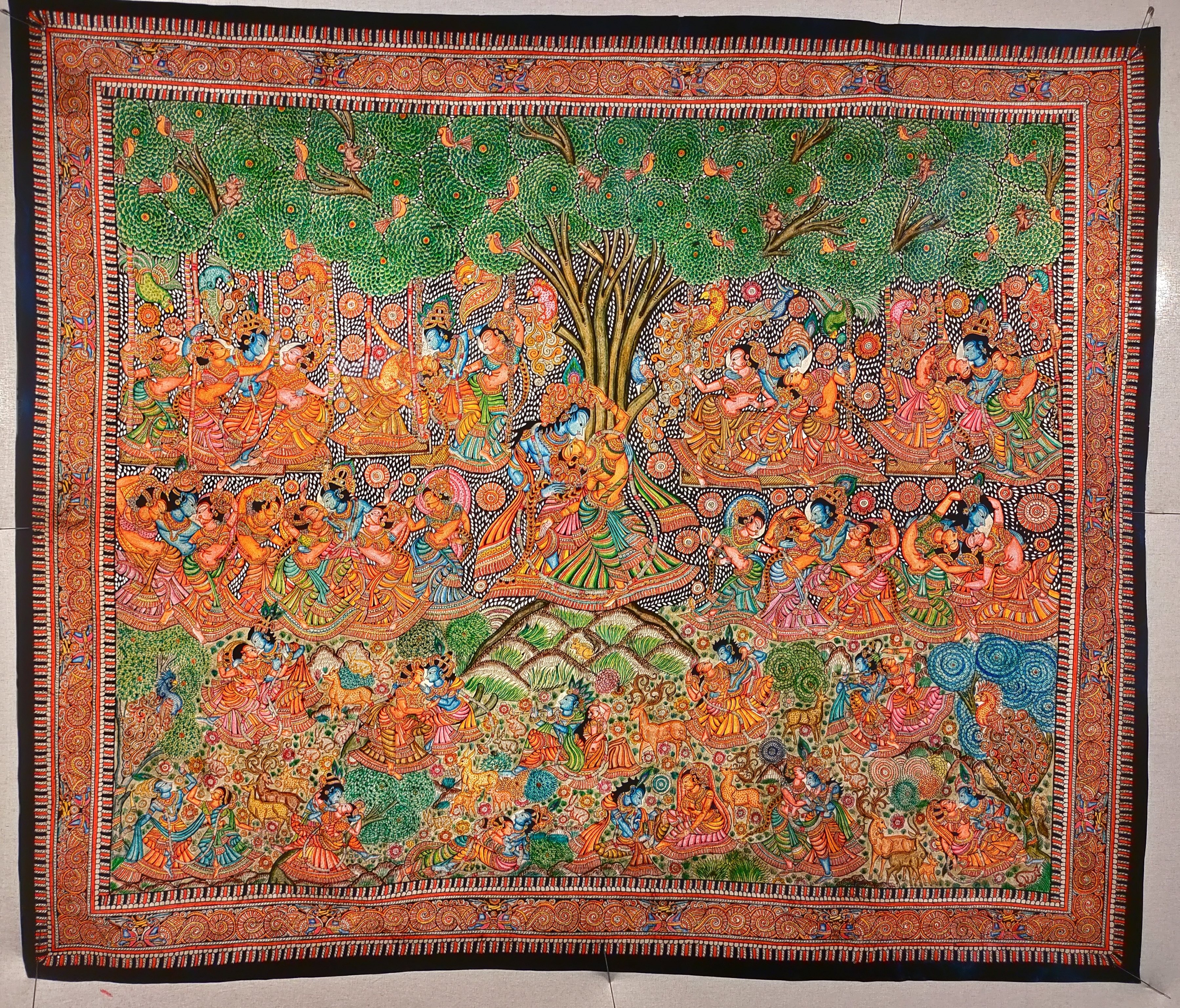 Sri Krishna raasa leela painting made by naturally cleaned goat leather