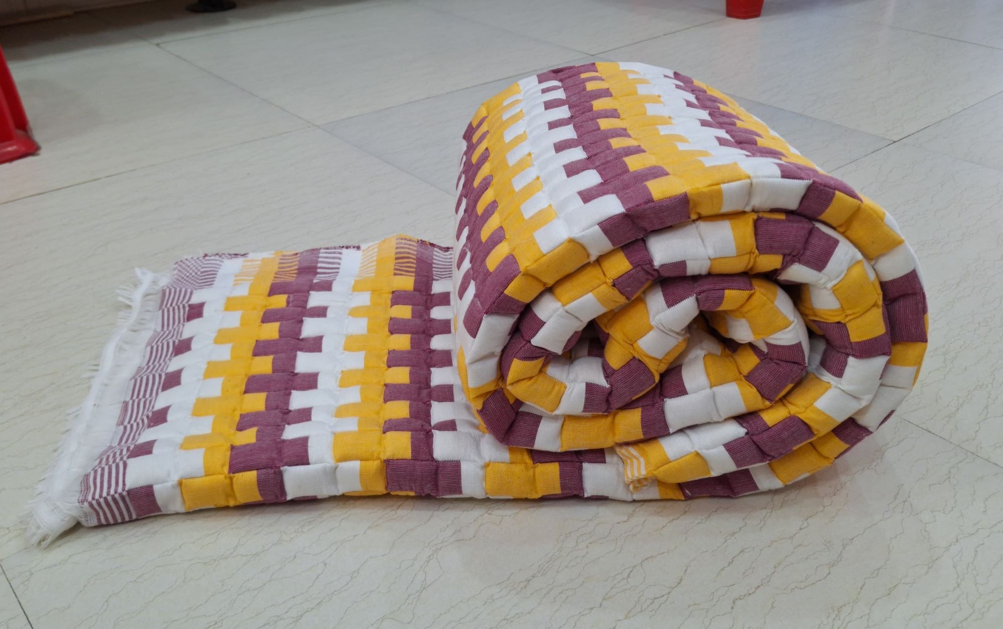 Each quilt takes 1–2 days to complete once the loom setup is ready, and setting up the loom may take over a month.