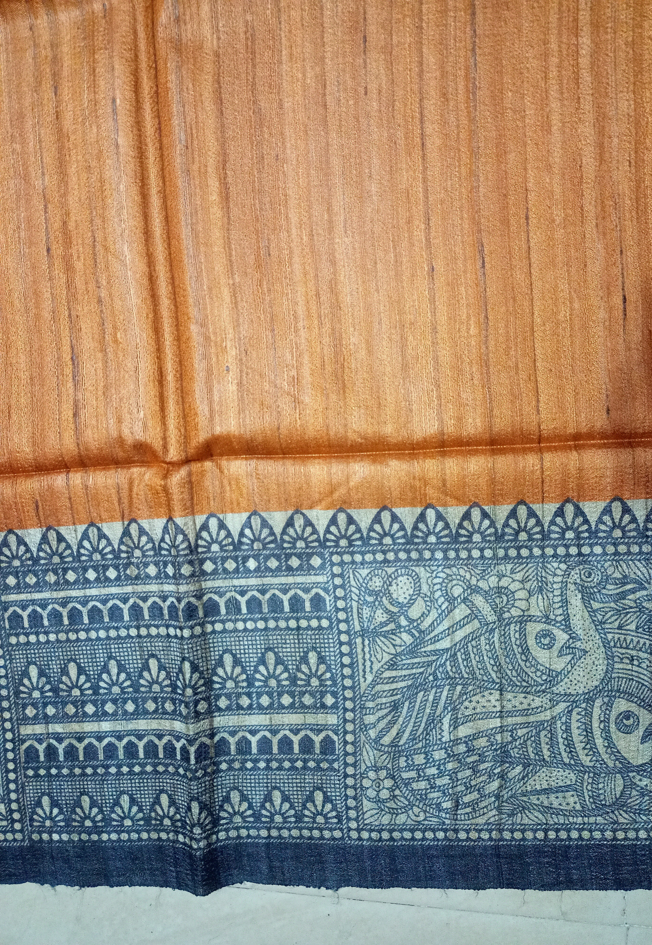 Tasar by ghicha madhubani print pure silk saree, 64 Reed 45 inch 6.30 c.m length
