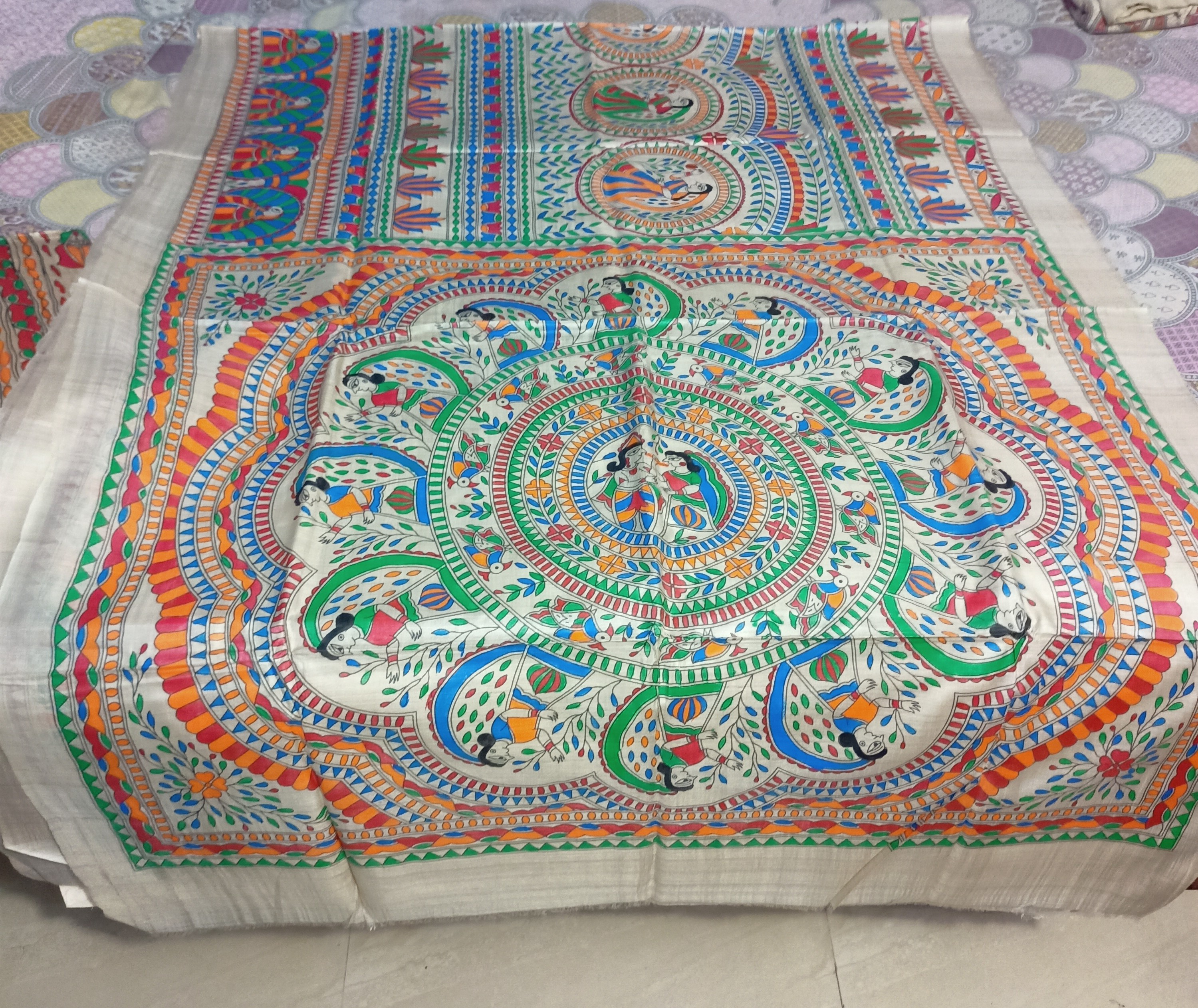 Tasar by Kosa Tasar madhubani hand painting full body work pure silk saree 72 Reed 45 inch 6.30 c.m length