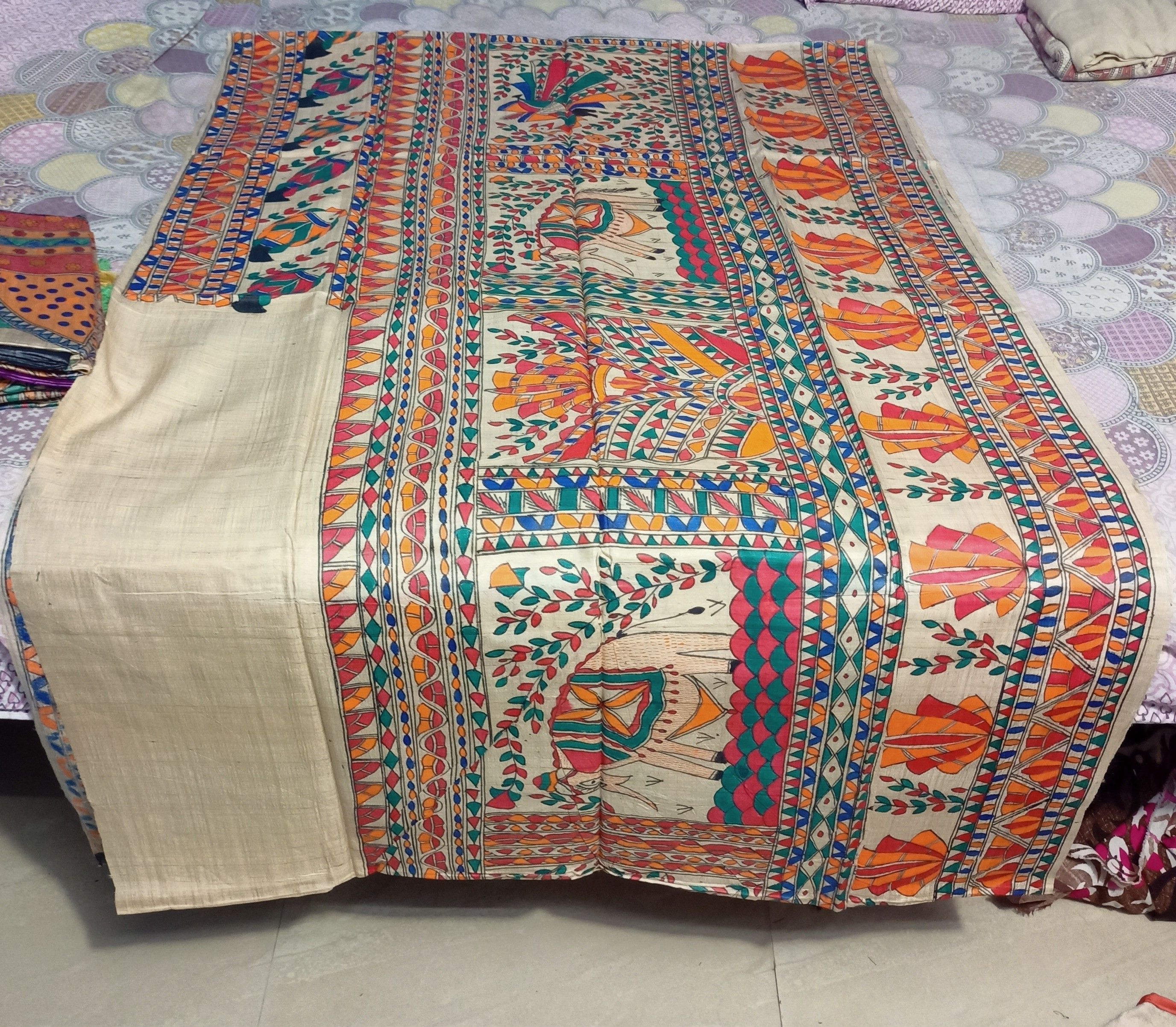 Tasar by kosa tasar full body Madhubani hand painting silk saree