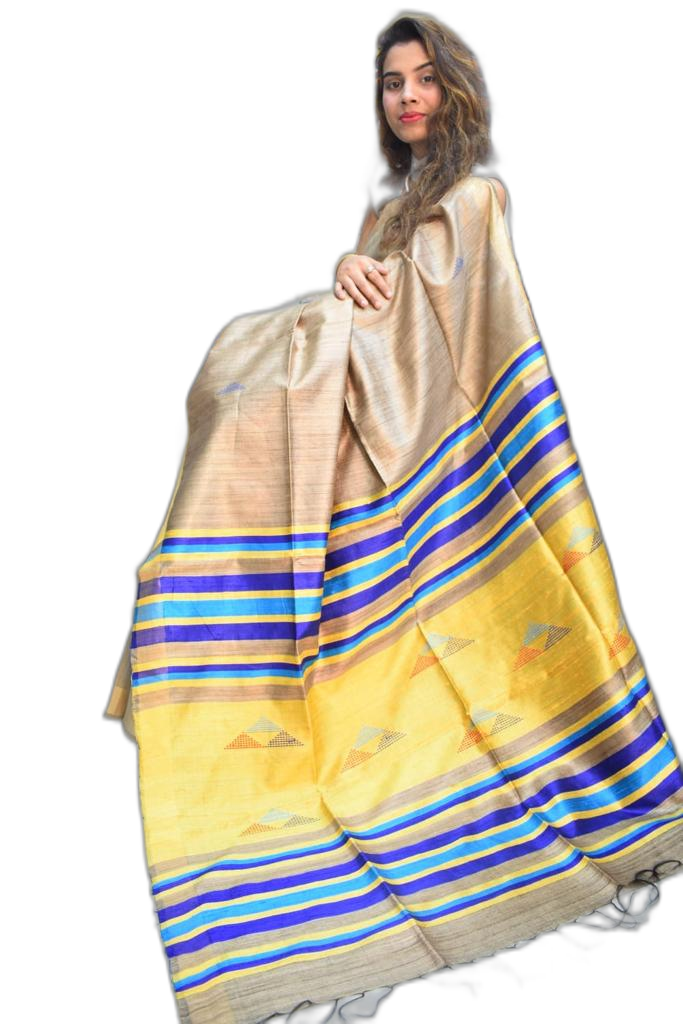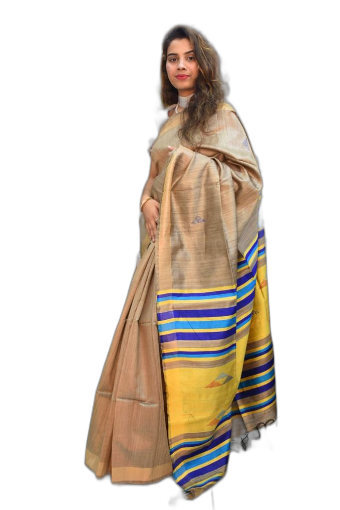 Handmade Pure Tussar Silk Saree with Striped Pallu