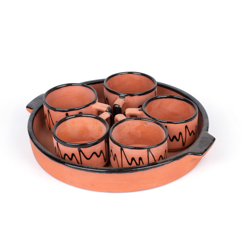 Terracotta Tea Cup Set with Tray | Set of 5